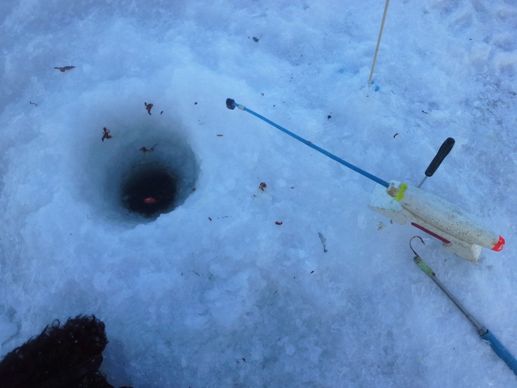 За 4 часа лунки успели замерзнут. Дул сильный ветер и -15 градусов.