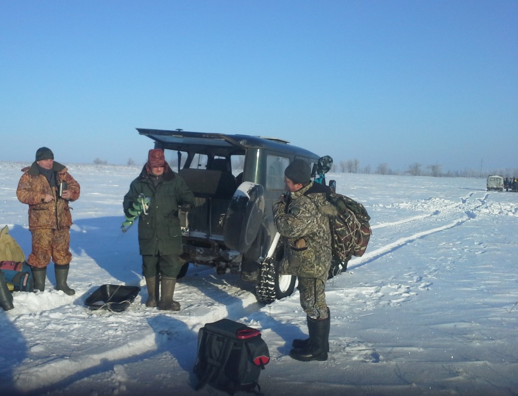 До водоема - 2км. А в поле - переметы, снега "по пояс". Решили, что быстрее дойдем. Как писал Сергей отморозок, иногда лучше идти, чем ехать. Через 40 мин мы будем у лунок.