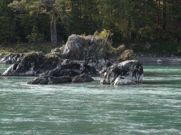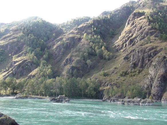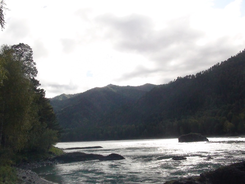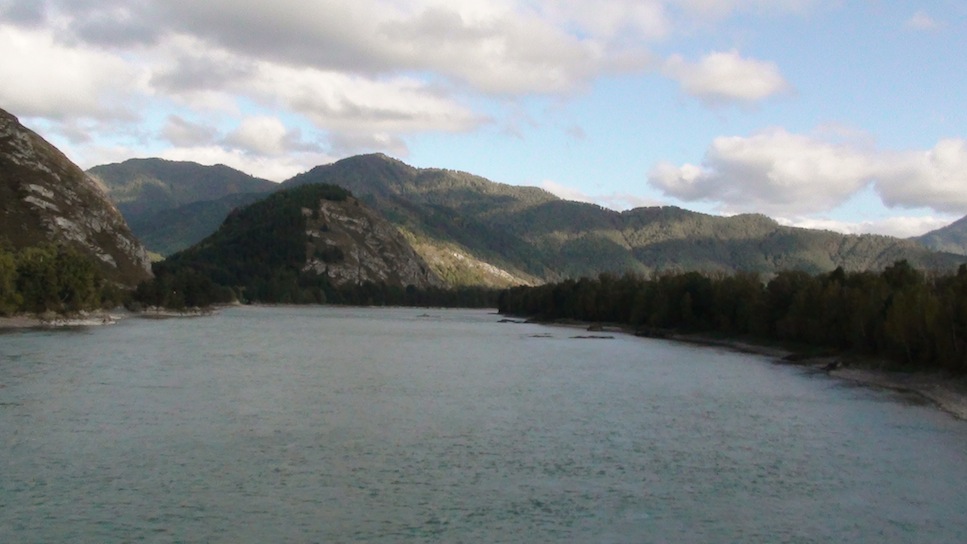 Позади меня р. Катунь и п. Чемал