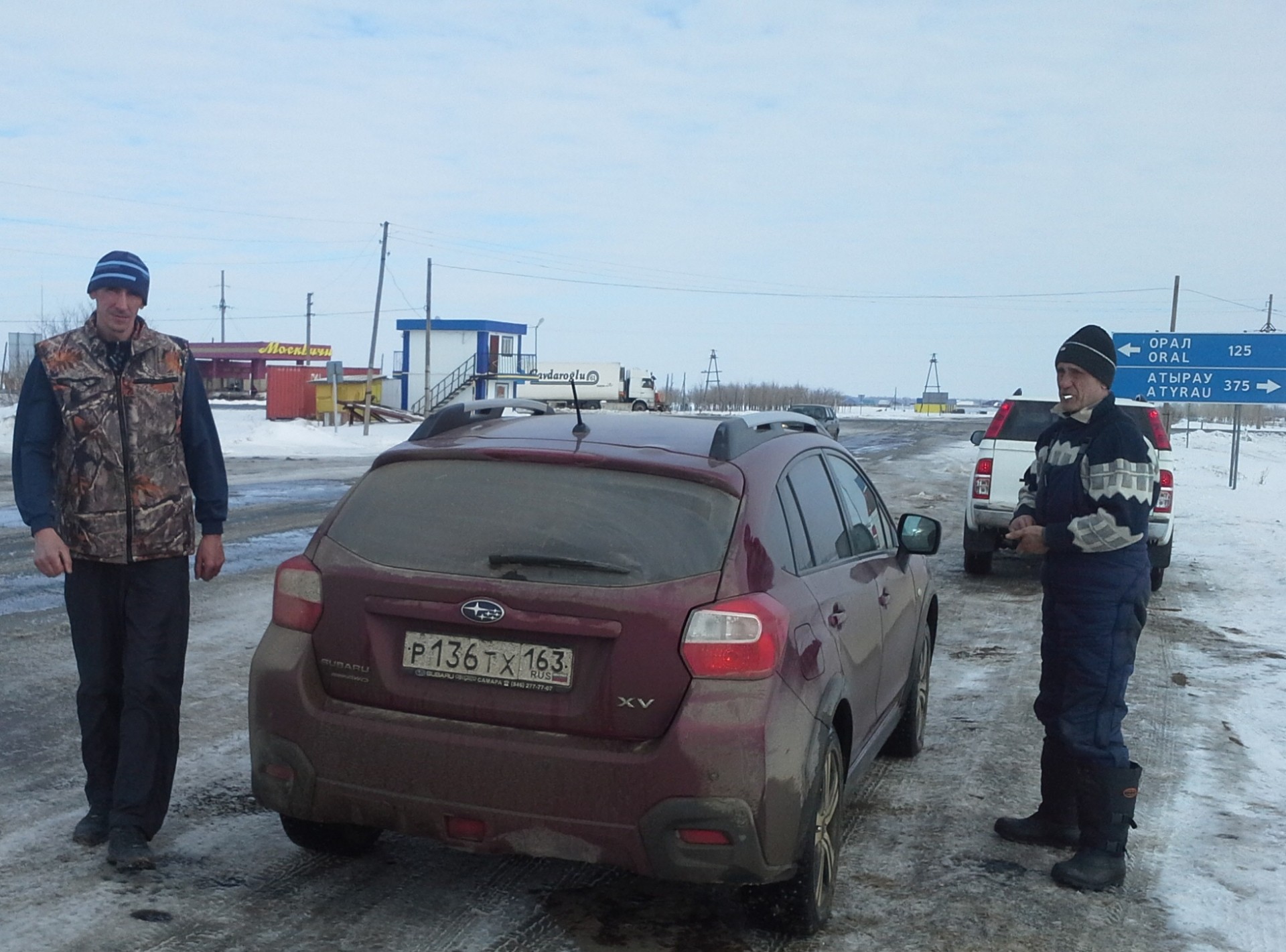 Доехав до п.Чапаев, Дима залил кипятка в термосы и заварил чай в пакетиках. Далее выезжаем на трассу до Уральска.