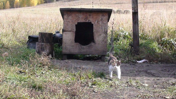 Суровые Алтайские кошки. Навстречу нам выбежала из будки.