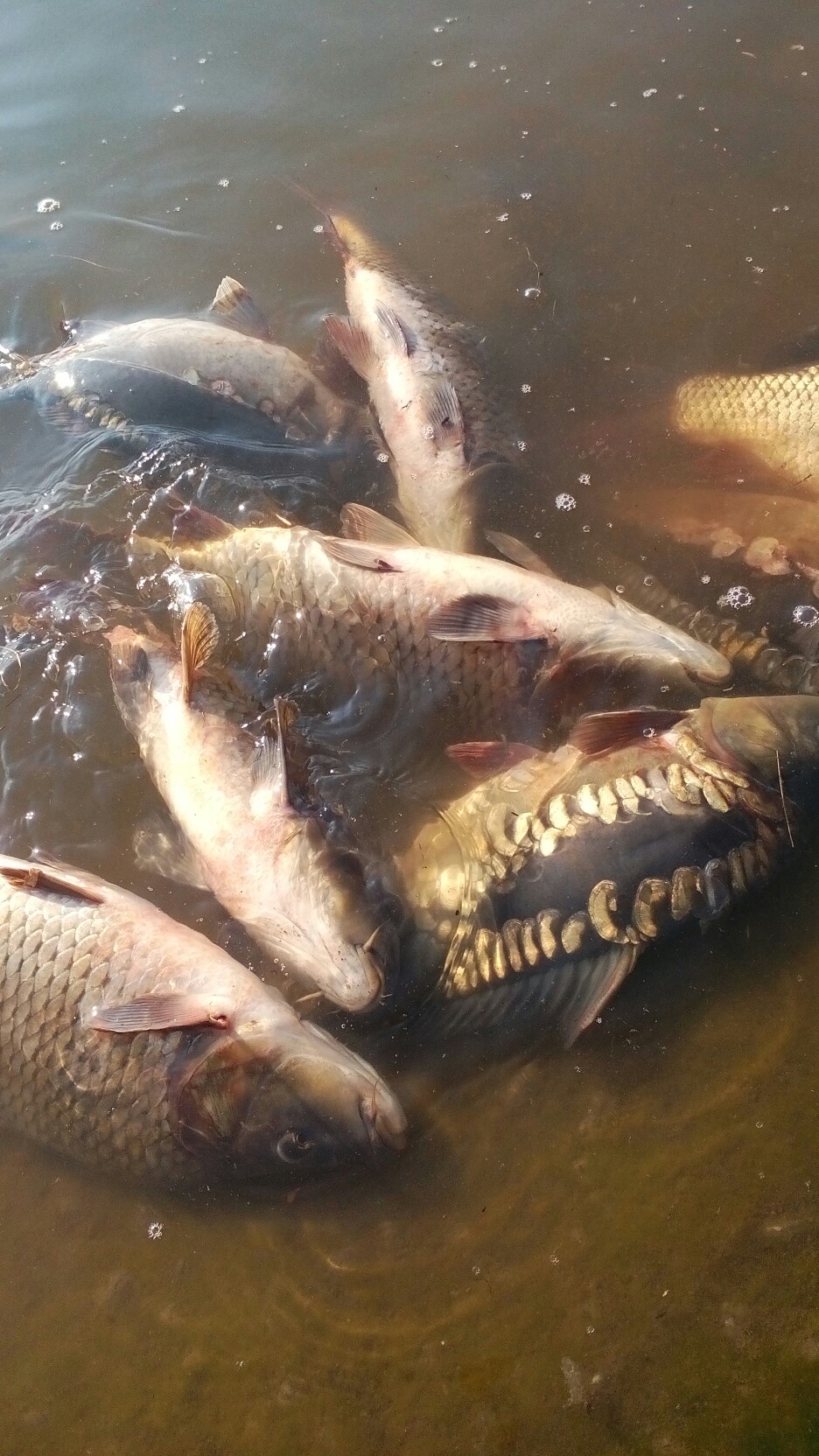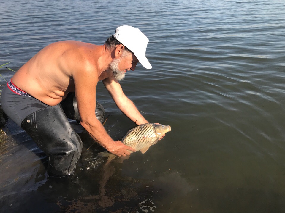 В садке были...Когда отпускали,дышали хорошо, но плавали на боку.Приходилось минут по 5 вперёд -назад водить.Это касается тех,кто за 5 кг.Мелкие от 2-х драпали резво.Обычно люди , который отпускают рыбу обратно в водоём не опускают их в садок , а бережно ложа карпа на мат или на его заменитель ( на траве/земле находятся бактерии не совмещённые с жизнедеятельностью карпа ), затем карп отправляется в сумку для взвешивания , потом фото держа карпа над матом ( если упадёт ,то на мат )