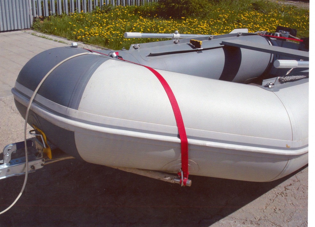 1.Чтобы передний стяжной ремень не "гудел"при перевозке лодки нижнюю часть перекручиваю несколько раз.