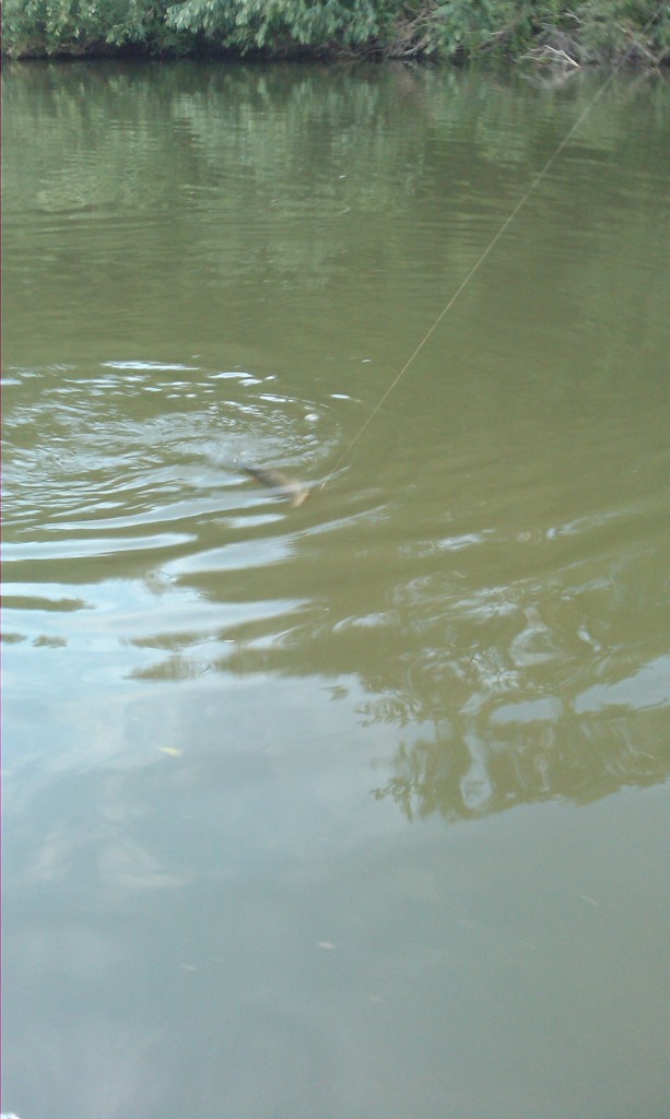 ... решил поехать на р.Тростянка и на обратном пути заскочить на пруд возле Конезавода.Вчера на Конезаводе обкатывал мультовый комплект Коркиш и Хрон.На Орбит 110 влетела щучка примерно на 1кг,следом шнурок на 0,5 кг.Вода после ливня очень мутная.Комплект понравился,буду продолжать осваивать.