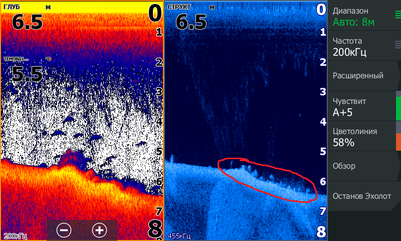 Подвоха в неопрене почти не видать,а пузырьки оч.хорошо.Снимали напротив Гранного,почти на фарватере.HDS Gen-2
