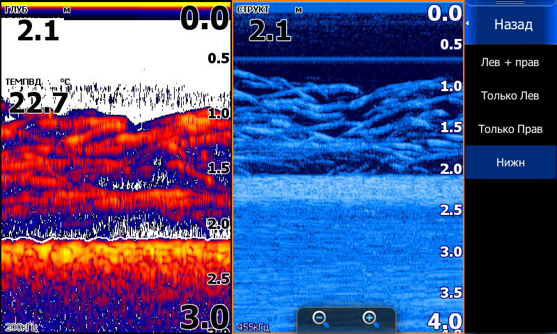 SS3D - 3D режим, а также нижний и боковой сканер на глубинах