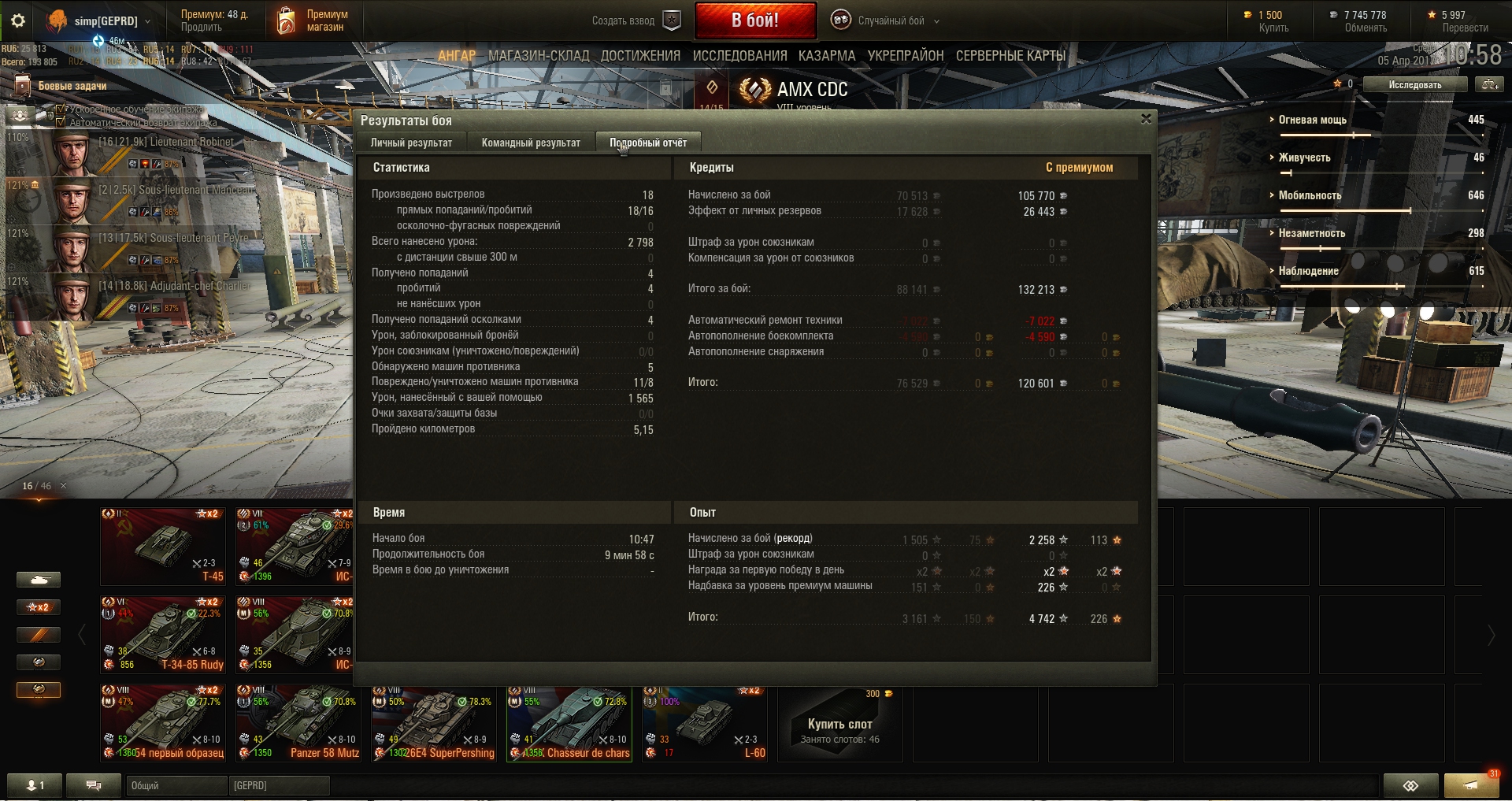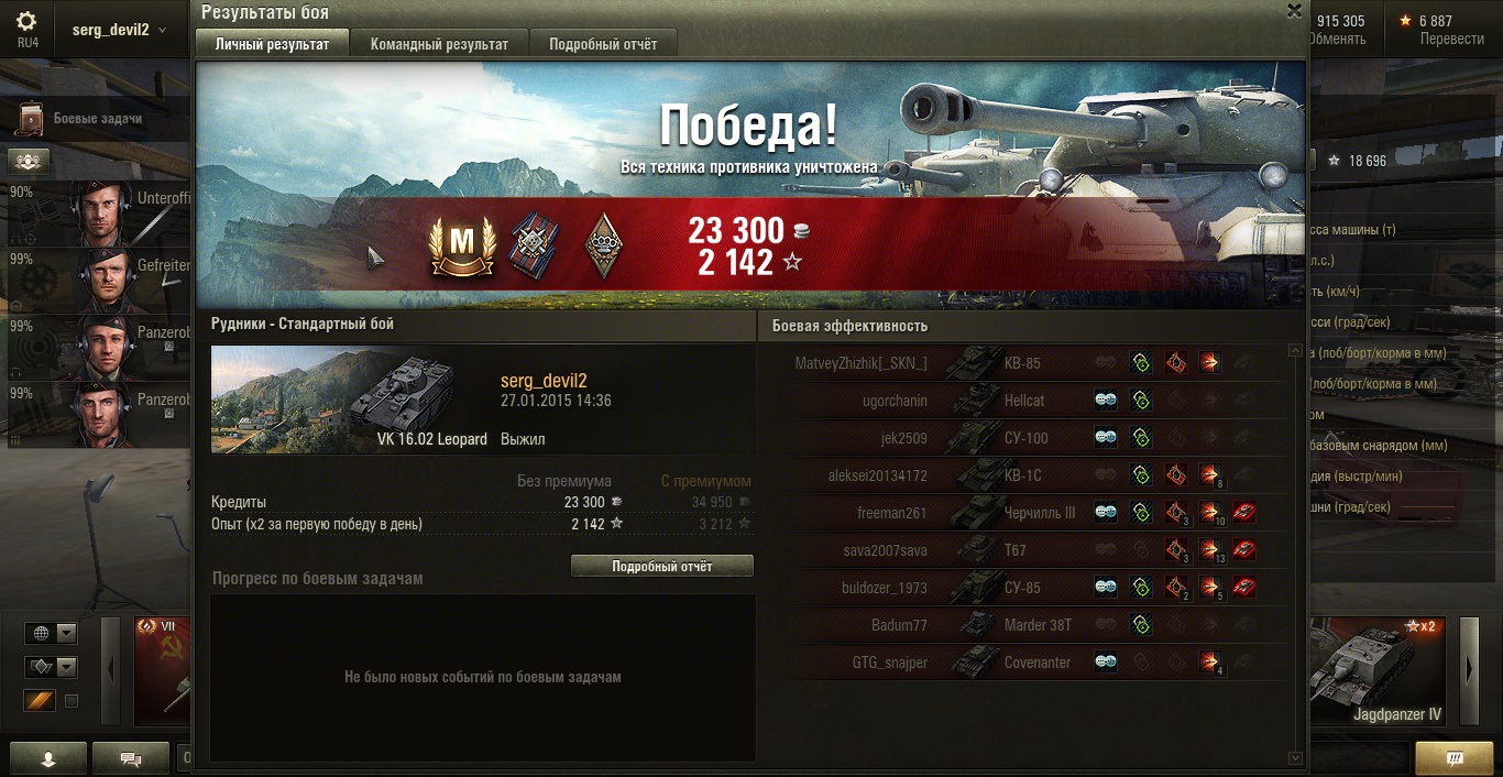 А почему у друга есть 122 боя на ИСе и ни одного на КВ-1С, КВ-1, Т-28, Т-46?!Все там есть, не видно просто на скрине, они наверху