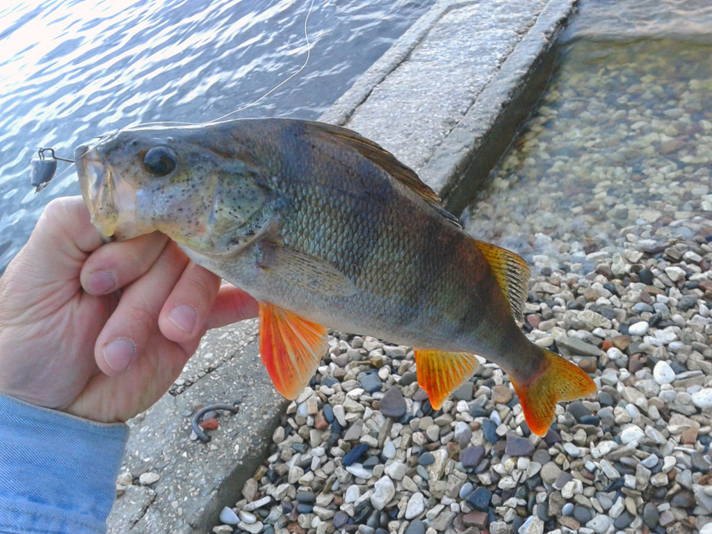 Сегодня вечерком после работы в очередной раз прогулялся по набережной. Судака уговорить не получилось, но зато река подарила неплохих окуньков.