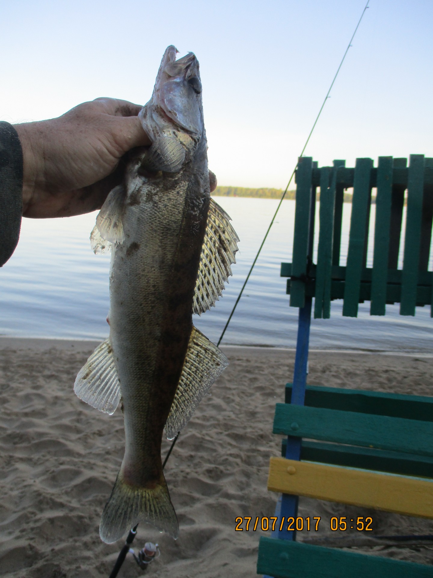 Сегодня опять не спалось, тем более, что с вечера была проведена работа над ошибками и я жаждал реванша. В пять утра уже на берегу, погода сахар, полный штиль. Окунь кушает, стандарт для наших пляжей 150-300 гр., ну и бонус сегодня был один и шансов уйти у него было гораздо меньше чем вчера, шнурочек я с вечера потолще намотал. На вид грамм 700-800, дал он мне жару, тем более палочка до 4 гр. всего тестом. Ну и подсак наконец-то обновил, без него было бы тяжко такого поросенка достать.