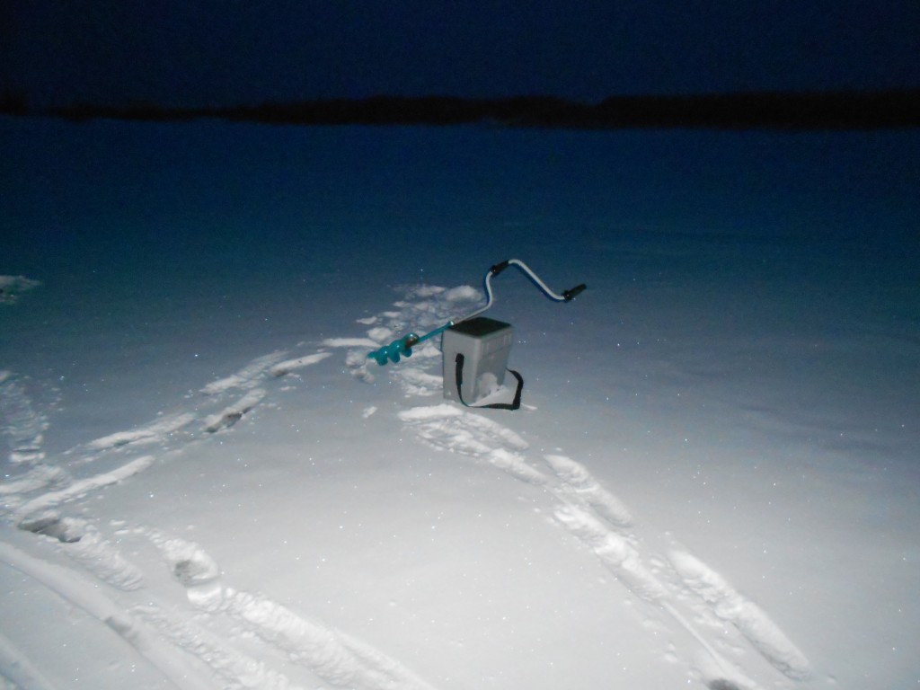 Лед не внушал доверия и, несмотря на осторожность, я все же провалился по грудь. Выбрался не сразу. Спасибо Роме – подал бур и вытащил меня. Без его помощи было бы не просто – лед ломался.