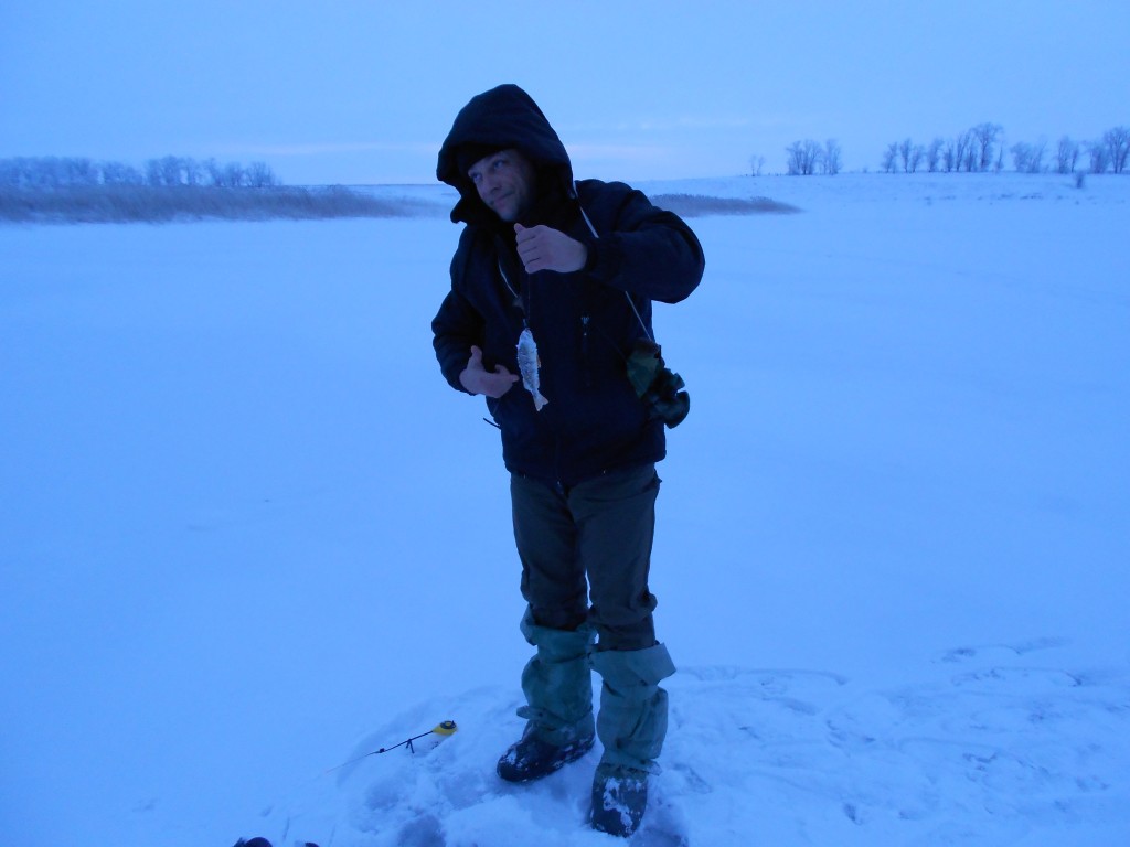 В субботу решил закрыть водномоторный сезон. Рванул в Екатериновку на щебенку, на месте был в 7-30, думал буду первым, чщаз берег забит уже, нашел местечко себе и понеслось ожыдание поклевки. :o ;Одному пузирю, на лодке чуть грузилом в репу не попал :#~, хотя орал что-бы свалил с вектора заброса. Просидел до 10 потом в кантору свалил, нужно было коечто прикупить для стройки у них, а они зараза даже и не открывались :% :%. Ну все водномоторный сезон закрыт. Чесно говоря этот сезон был для меня лично просто жесть, даже жена спрашивала а где рыба, пол дня неизвесно где мотался бензин сжок а толку нет и рыб нету :^! :^!, лювование природой мягко говоря стало стабильным ???я надеюсь только в прошедший сезон мокрой воды. Зато открыл сезон двердой воды. Заехал на озеро причем там был первым, пешня с собой в машине зимние снасти тоже там-же. Выхожу на лед, пешнюй проверяю лед, пробил дырку, проверил лед а там 5 см да трещит и стрелки идут в разные стороны но толщина приличная, вощем начал искать ротота. Пробил дырок 10 и лишь в одной была потычка. Пригляделся а мормышка вся светится в лучах солнца, даже через лед видно. Пеменял на черта, полоскане минут 10 показали что толку мало :'( Решил подсадить опарыша и тут "понеслось". Вощем за 1.5 часа пойлал 4 ратанов. Сезон твердой воды открыт, надеюсь он небудет как летний сезон у меня. Всем удачи на льду и поокуратнее на льду, всякое бывает.