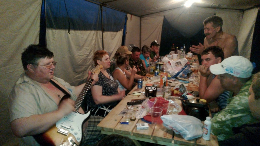 Так за шутками, танцами и весельем подошел к концу второй день, народ балагурил до поздна, пока не кончился бензин в генераторе. На утро воскресения первыми встали рыбаки - Глеб, Чкаловец и Шаман и занялись своим мужским увлечением, а потом начал к общему столу подтягиваться и все участники фестиваля, чай любезно предоставленный Сергеем Sерый - привел всех в чувство, Сережа - спасибо тебе, жаль, что не смог к нам присоединиться. Утренние посиделки и вот потихоньку народ стал разъезжаться - грустно, но время диктует своё.