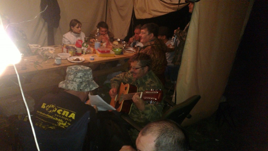 Вадим привез гитару и вот тут конечно начались настоящие бардовские песнопения - у нас много талантов [smile=klass] Отдельное спасибо гитаристам - Саша иванович играл так душевно, что наши песни были слышны наверное в ближайшем Казахстане, Слава Плохиш исполнил душевный репертуар, а под занавес и Вадим Байконур - был незабываем со своими фирменными песнями - спасибо вам пацаны.