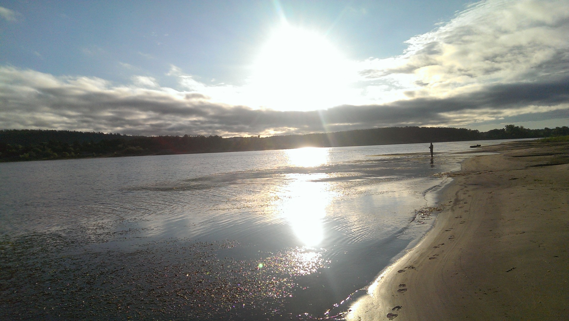 Уровень воды очень низкий. Ветерок так же не добавил оптимизма. Может поэтому и клёв такой.В данный момент нахожусь в ХМАО (на работе). Лета здесь практически и не было, в часто шли дожди. Уровень воды в реке и заливах приблизительно на 1,7 м. выше обычного (в этот период). Ловля на спиннинг с берега очень затруднительное занятие - берег почти полностью затоплен, и вода продолжает прибывать - а так хотелось местной щучки половить... :(