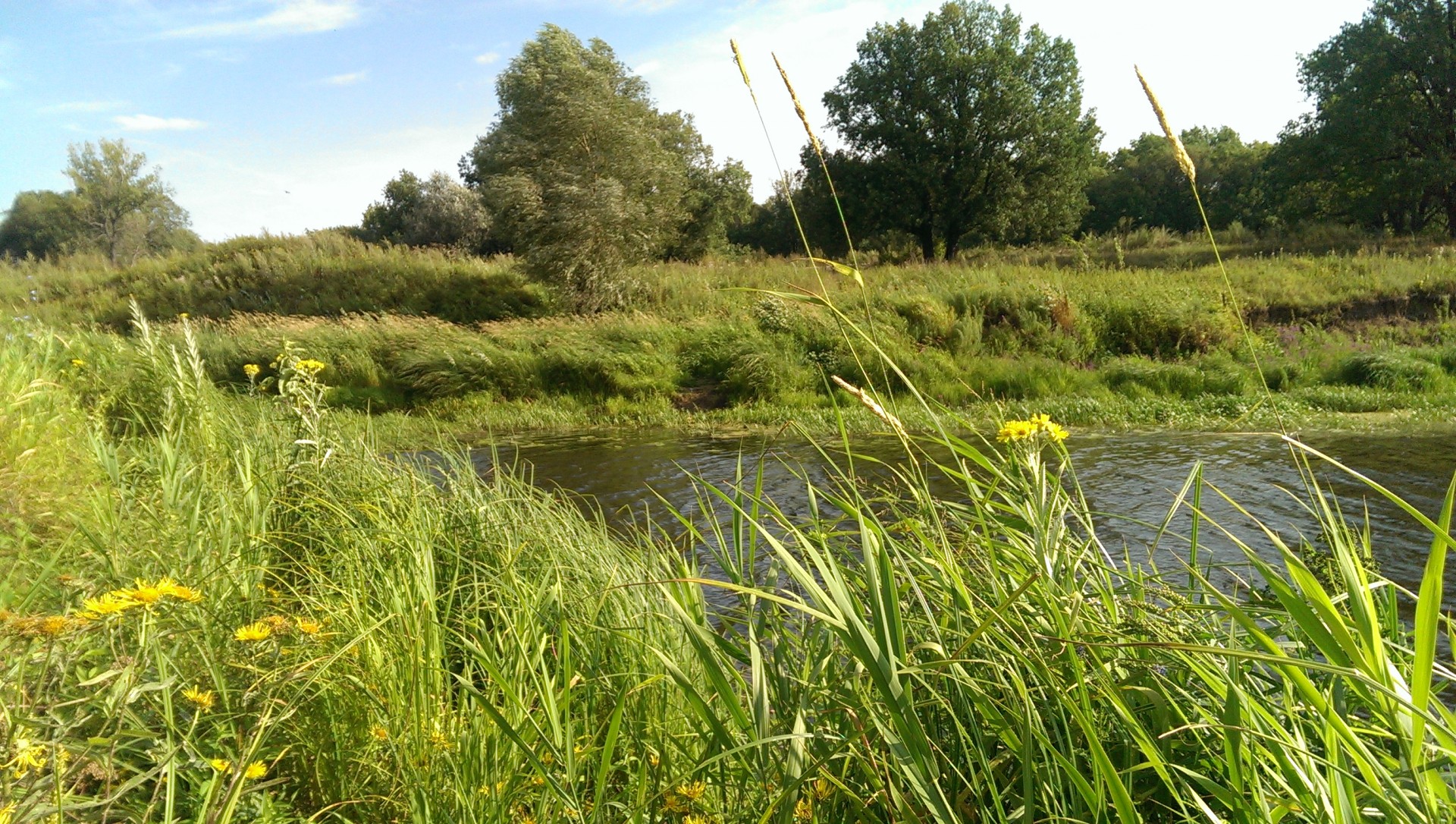 Всем привет, вчера немного проспав утренею зорьку, все же выехал на запланированное место рыбалки, стрелка реки Большой Кинель и Самара. Место для рыбной ловли по моему очень перспективное, поворот реки Самара и в повороте выход с Б. Кинеля, но места как и следовало не плохое как и для рыбалки так и для отдыха. В одном комфортном мест для ловли на фидер весит тарзанка, на другом обустроенное кострище и даже кронштейн для казана. Рыбачить собирался до 10, так что в надежде на долго спящих или копошащихся в грядках дачника обустроился у кострища, рядом с плакучей ивой, у которой была лужа как после дождя. В месте ловли ширина реки метров 80, глубина около 4-5 метров, течение довольно таки сильное для р. Самара (еле держалась кормушка 90гр.). Прибрежная бровка как таковая отсутствует, обрывистый берег, с противоположенной стороны покатый. В 60 метрах от берега небольшая бровка (у неё и ловил). Дно, местами ил, песок и ракушечник.может конечно не в тему,но там прям в устье поперек на тот берег и обратно ставят сети браки [smiley=kill.gif] (у них там стан,прям как ты сказал от места под казан идёт тропа,наблюдал как дачники к ним приезжают за рыбой и раками)писал об этом деле Петровичу.
