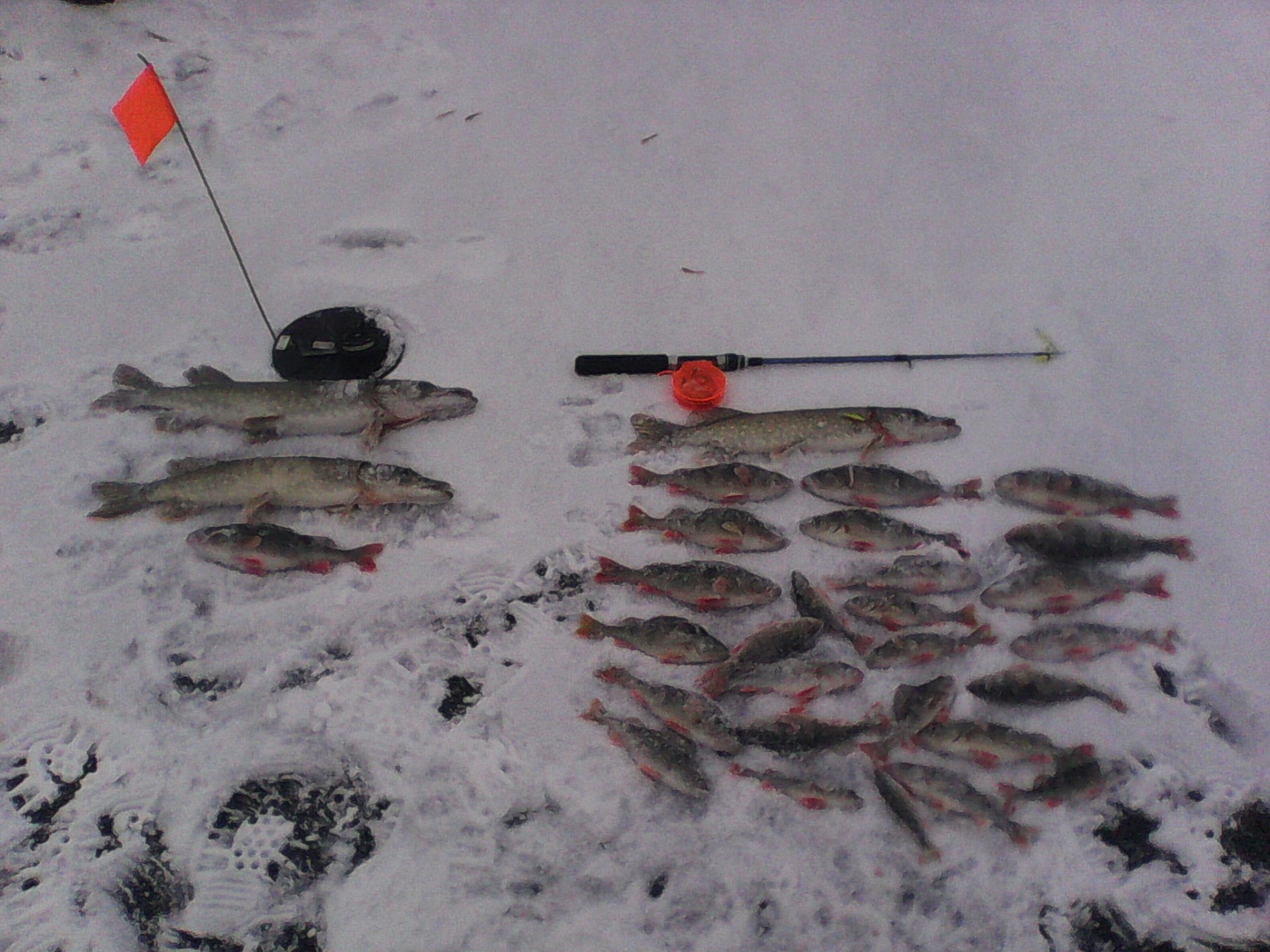 Были в вчера в Рубежке! Ставили жерлицы - щука не клевала, было 3 флага! Ветер дул! Замерзли!