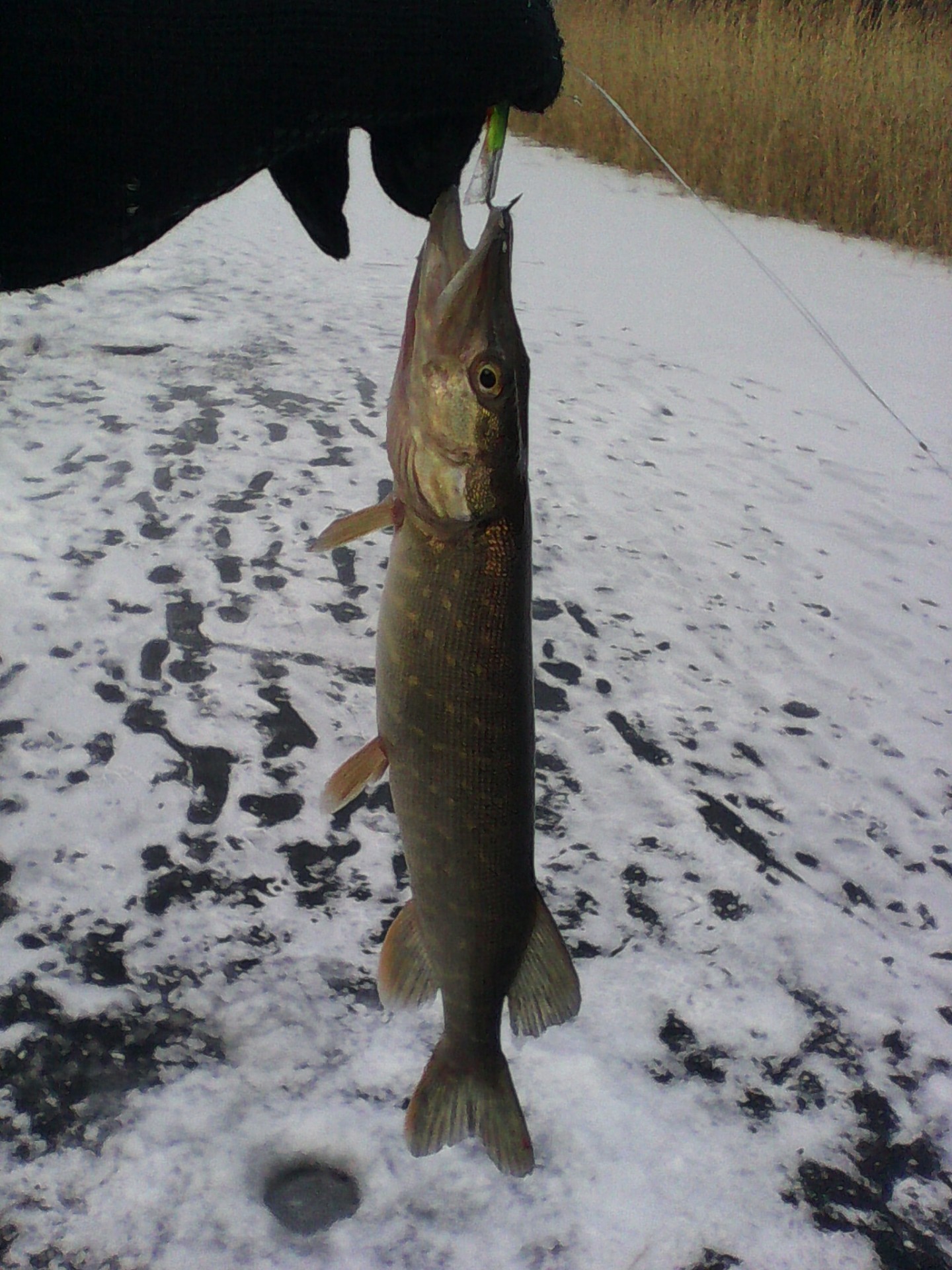 Дело житейское-замор, снежочек лед придавил, вся гниль и повылазила от берегов. Я, после нового года всегда сначала воду нюхаю, прежде чем жерлицы выставить. А вы еще небось, судя по времени засыпания живца, в тупичках ставились?Не соглашусь с тем, что в описанных местах щук нет >:(, - сегодня рыбачил в Луговом, забурился в затоне, уперся буром в дно, вытащил кучу водорослей на лезвиях, в итоге - лунка грязная, запах из лунки как из биотуалета [ssm31]. Каждая лунка давалась потом и мазолями, поэтому четвертая лунка, пробуренная впустую разозлила меня окончательно [ssm102], после чего жерлица с заряженным карасем была со злости закинута в лунку без примерки и т.д., только флаг зарядил для приличия... Передохнул немного и пошел буриться подальше от камыша. Каковым же было моё изумление, когда направляясь за банкой с живцом я увидел флаг :o и вращающуюся катушку..... Шнур попался уж очень небольшого размера, но!!! он сидел в этом тухляке и даже пытался питаться в таких антисанитарийных условиях.