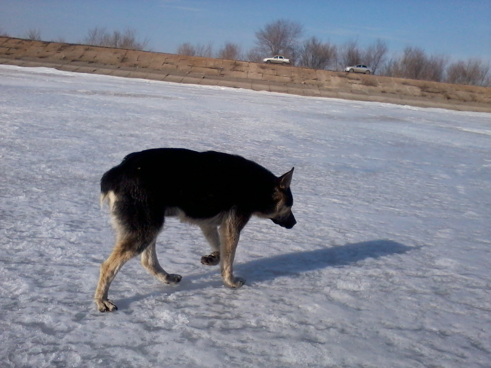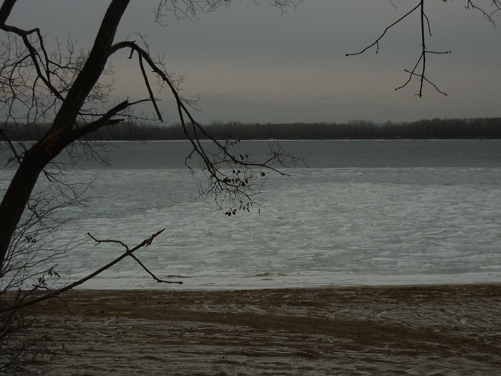 Уже дома, наблюдаю из окна трех рыбаков примерно напротив шмидта на той стороне. Но на льду местами вода - опасно ..
