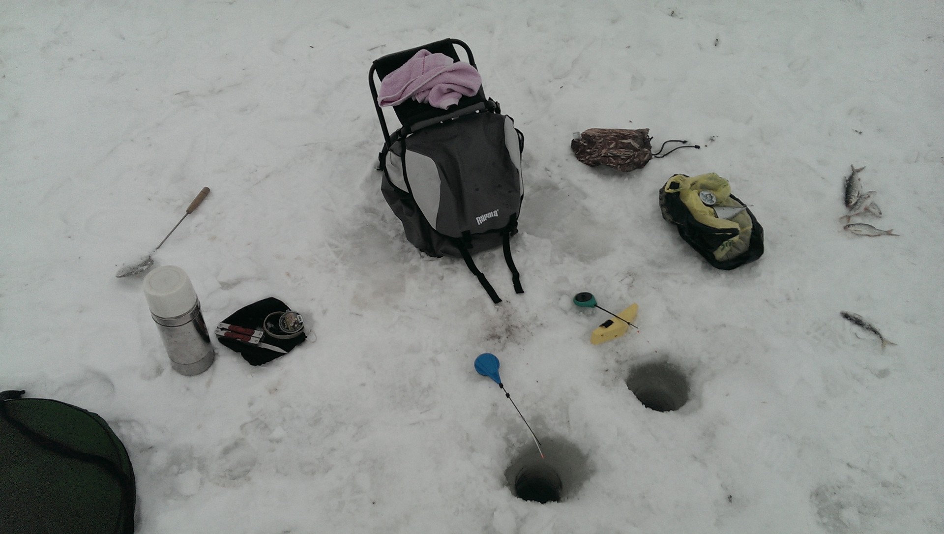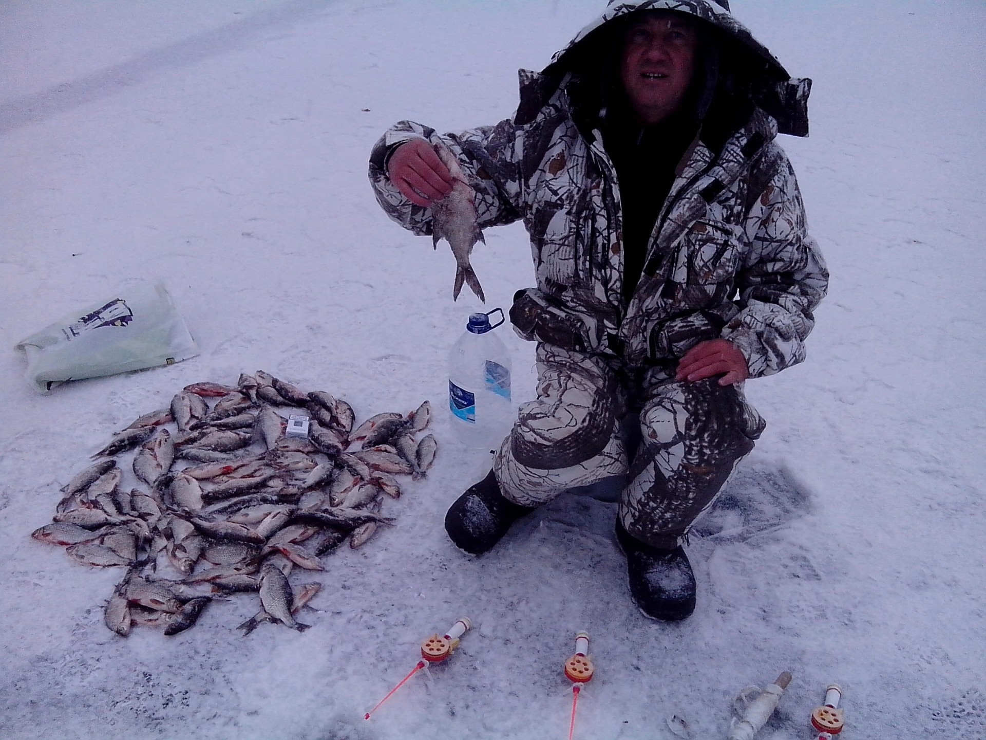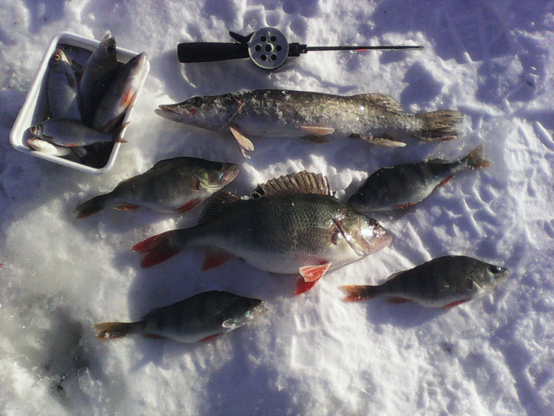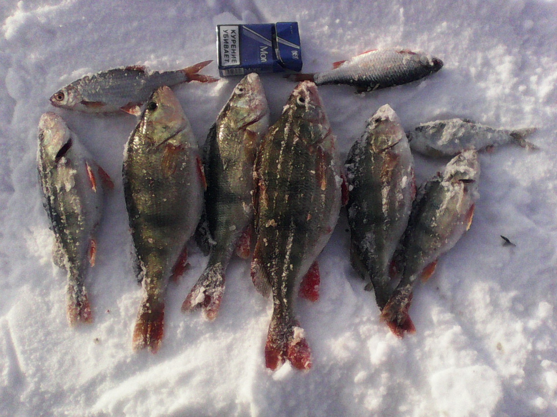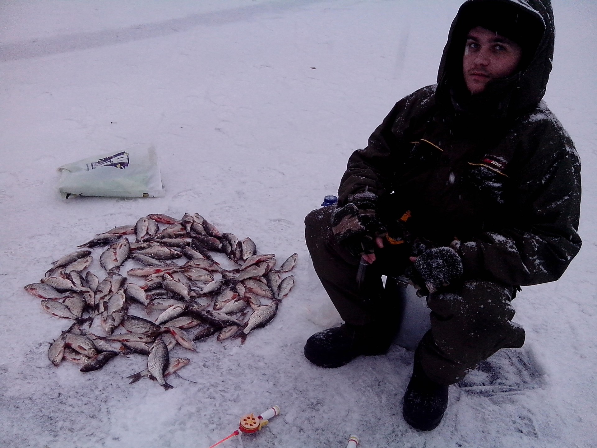 Сегодня с Русланом пробежались по давно забытым местам, размер не ахти, но поклевок море (с одной лунки до 7 поклевок :o) [smile=klass]