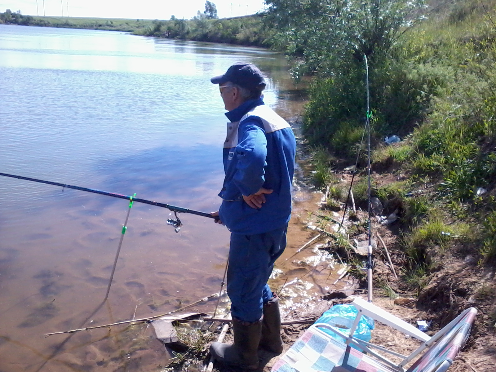 На фотке вроде спокойно, а на самом деле волнение сильное, поплавок гонит против чечения и ложит на бок ...