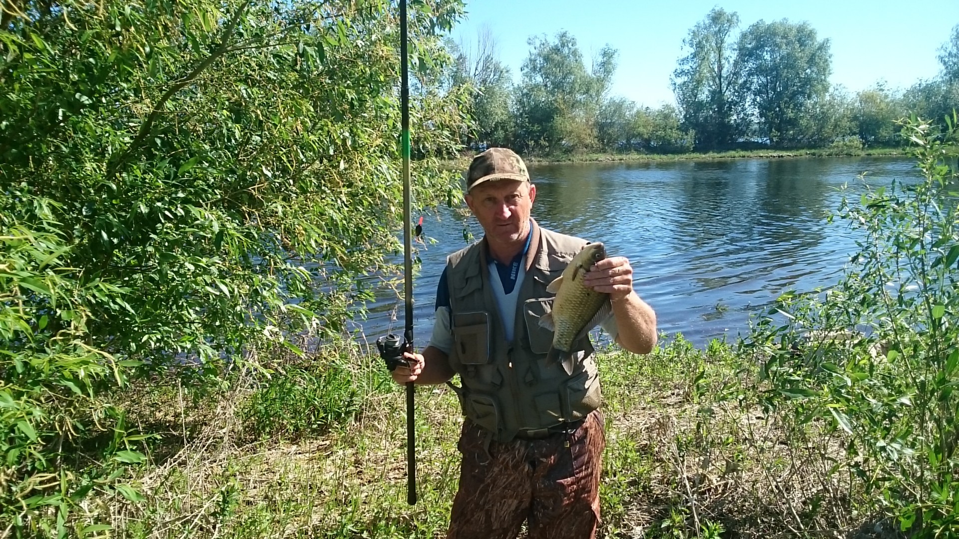 В 7.00 на месте, народу ни кого - плохой признак. Раскладываюсь забрасываю фидер и ...и тишина... Внутренний голос шепчет - "закинь поплавочек". Пслушался- закинул, и понеслось... как тучка закроет солнце, так фанерка с соргой вперемешку. Как солнышко выглянет так карась берет да так бойко-вытаскивать одно удовольствие.