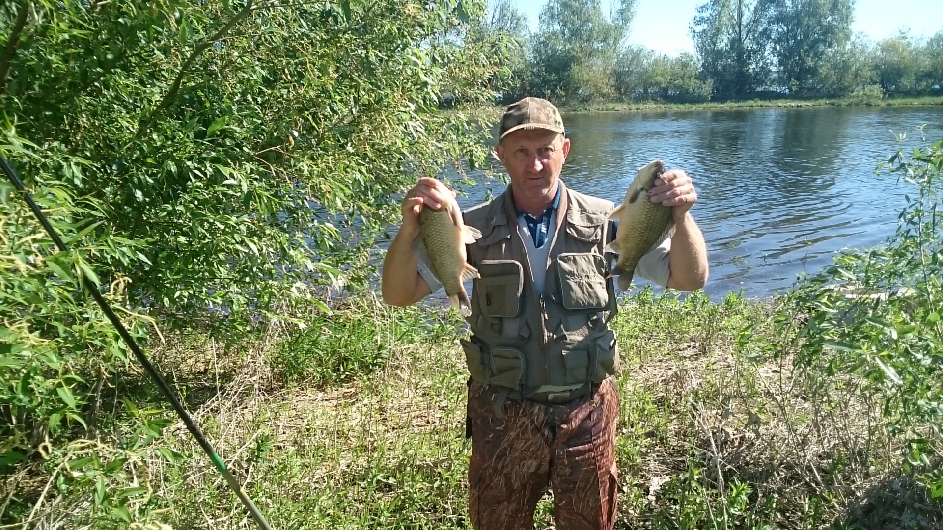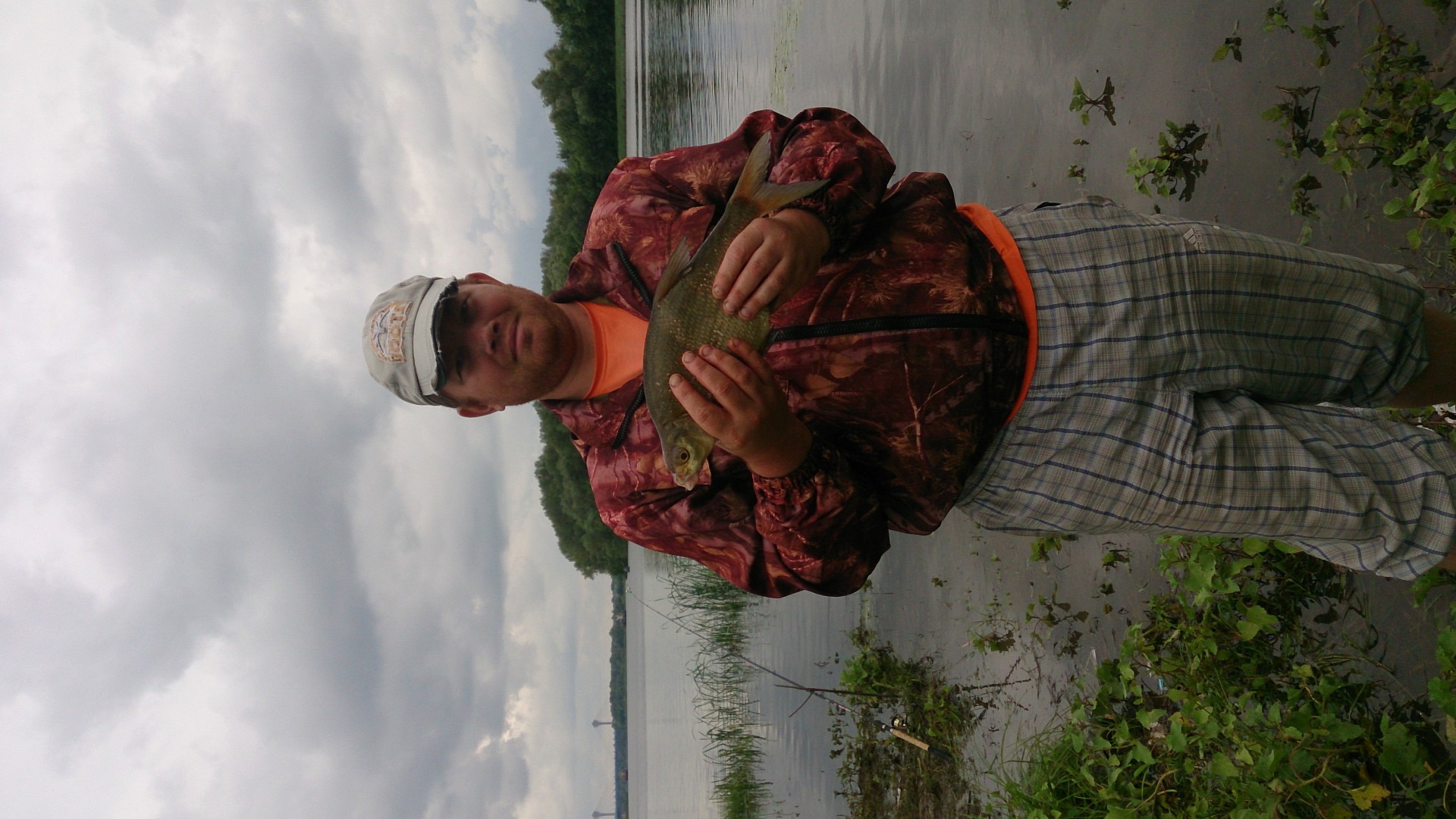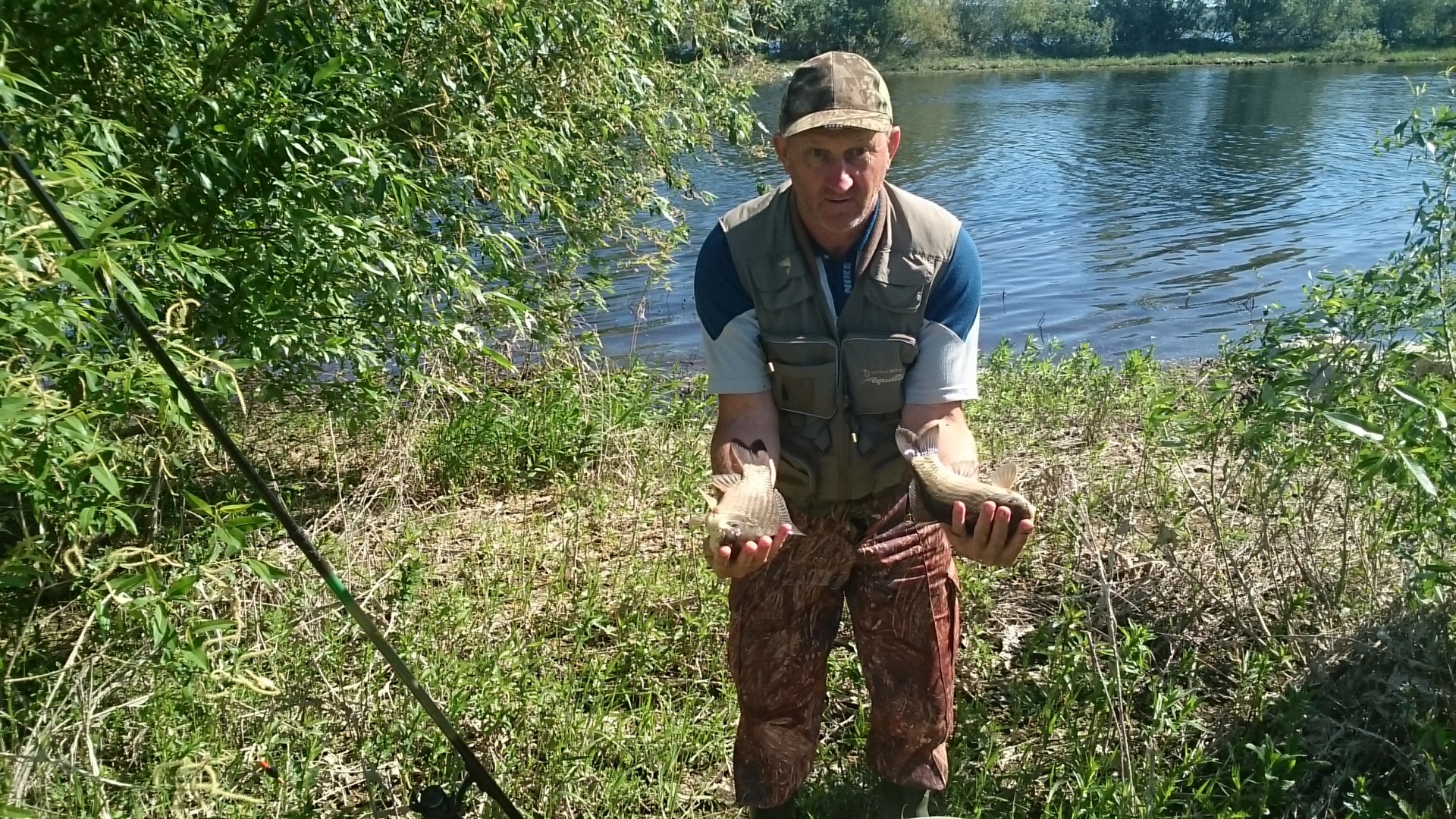 По соседству сидел мужик на резиновой лодке. Не видел, чтобы он особо ловил(да и не до него было), но когда он поднял садок, то я позавидовал. Там полоскалось штук 10-15 таких же как у меня экземпляров.