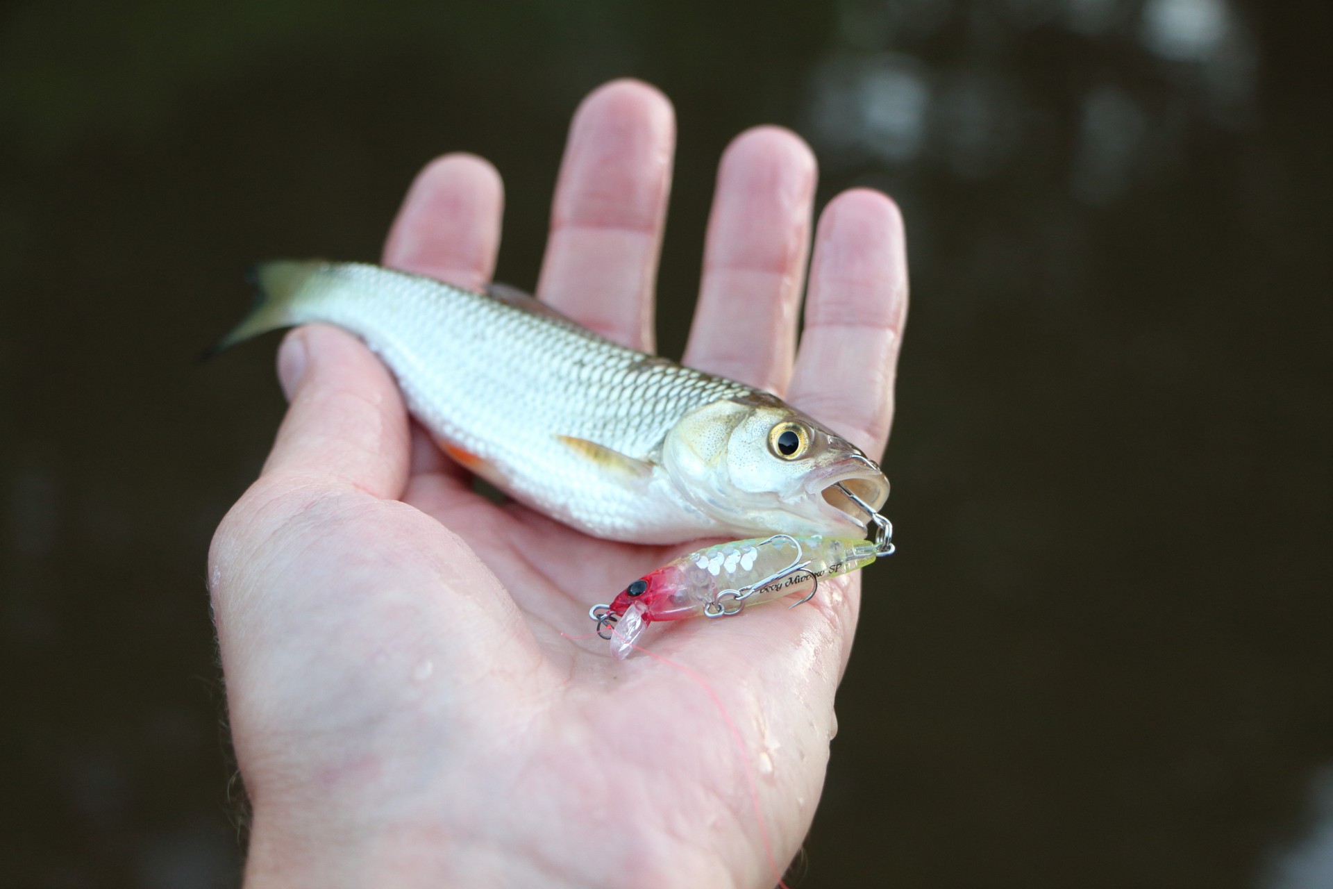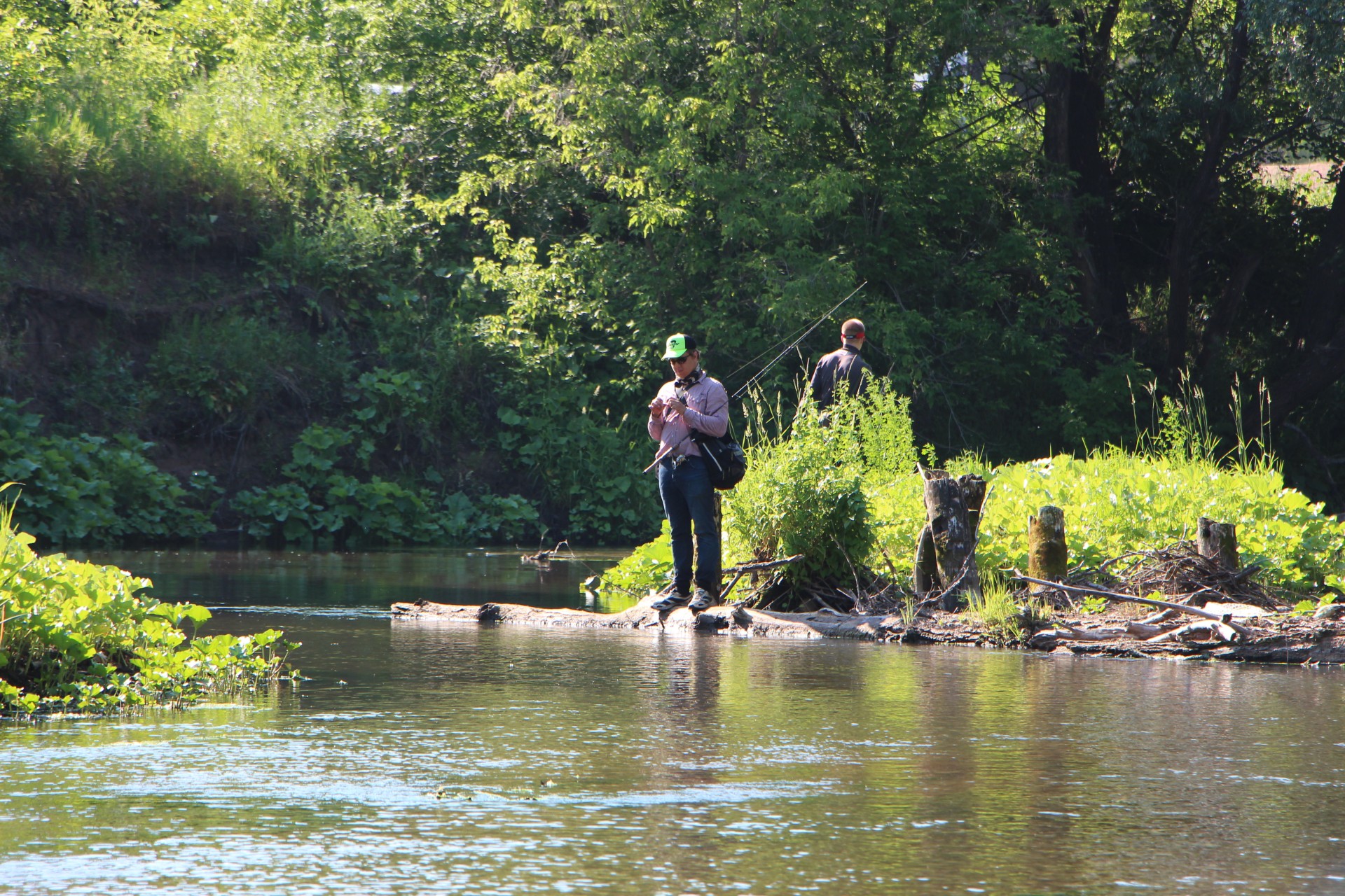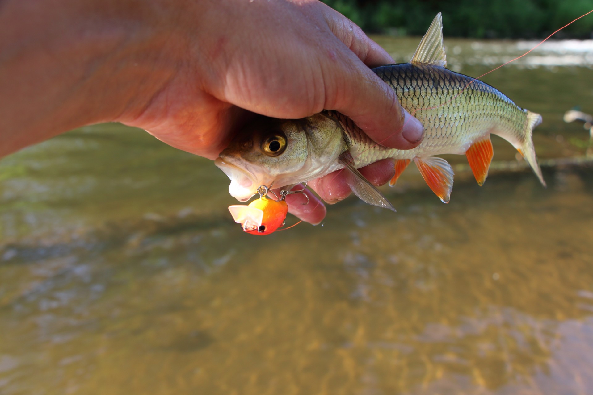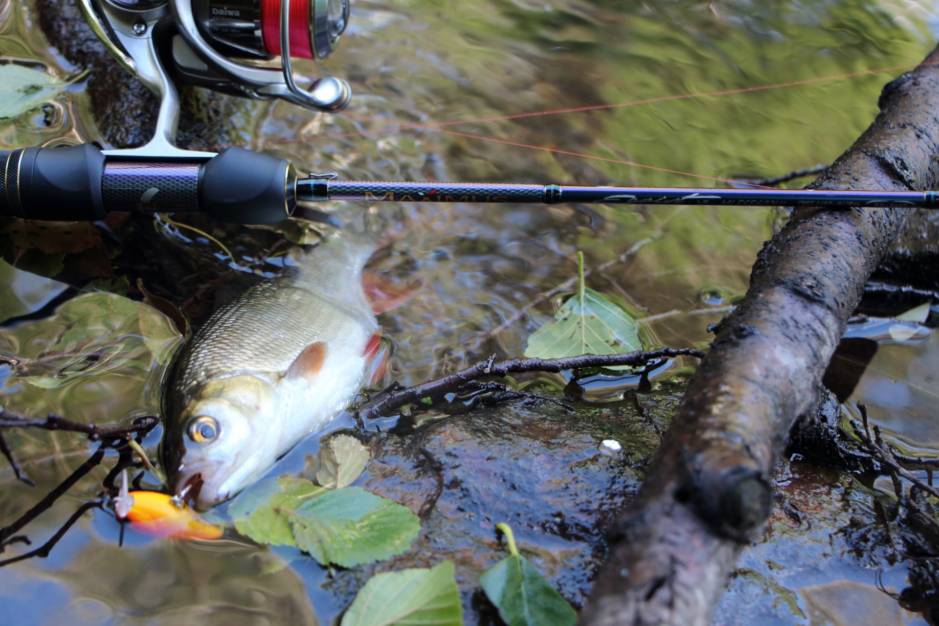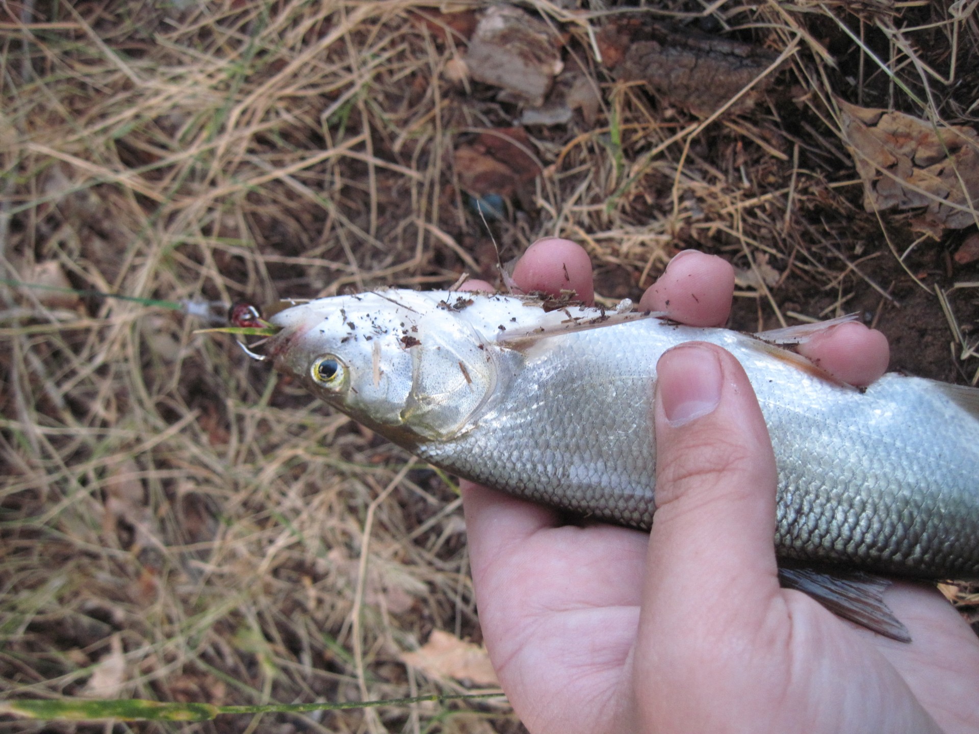 Нашел напарника. Он тоже поймал несколько голавлей, но с берега. Не так тщательно облавливая, но зато, пройдя больший участок он поймал даже больше чем я, лазая по воде в вейдерсах.