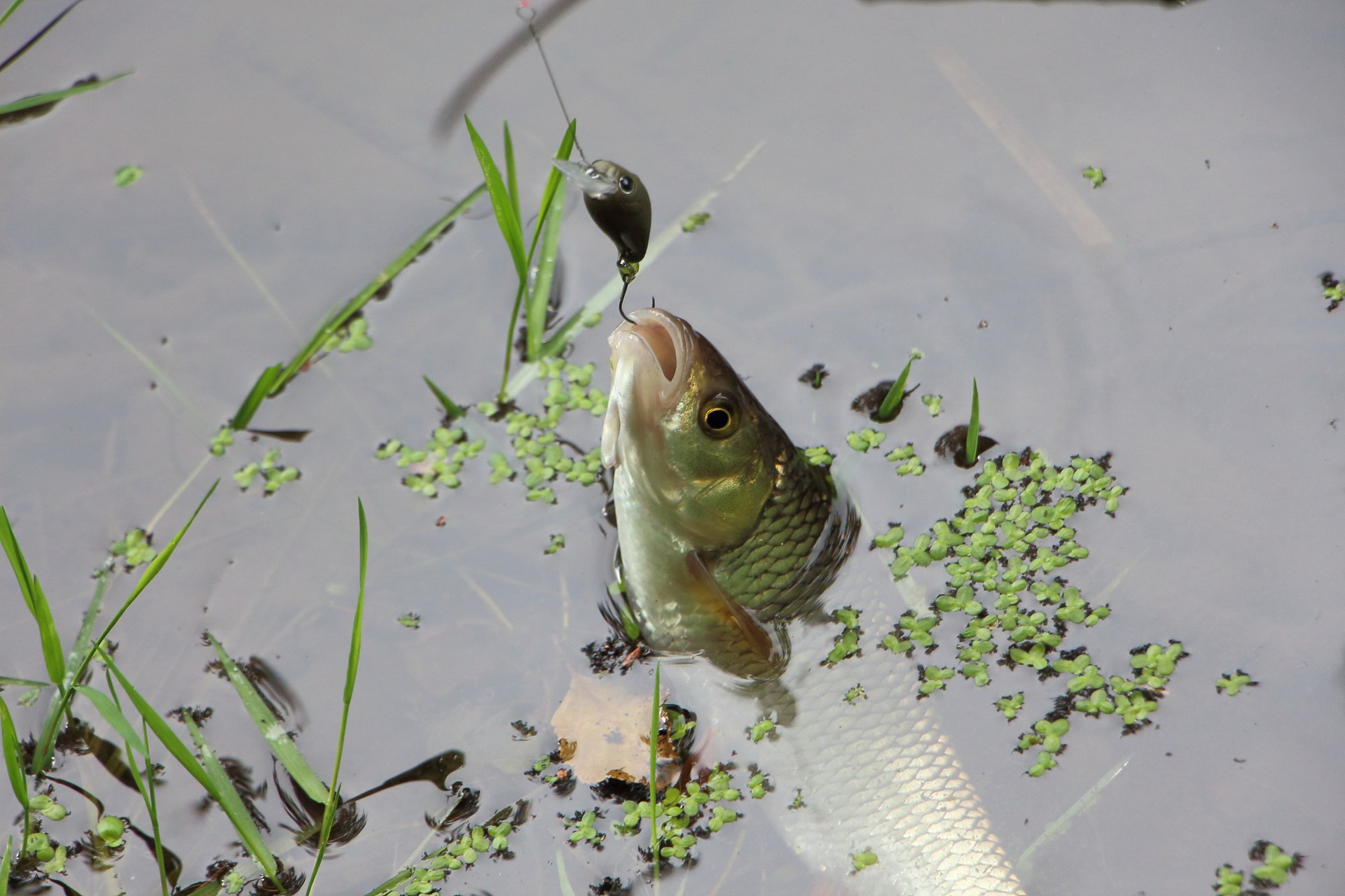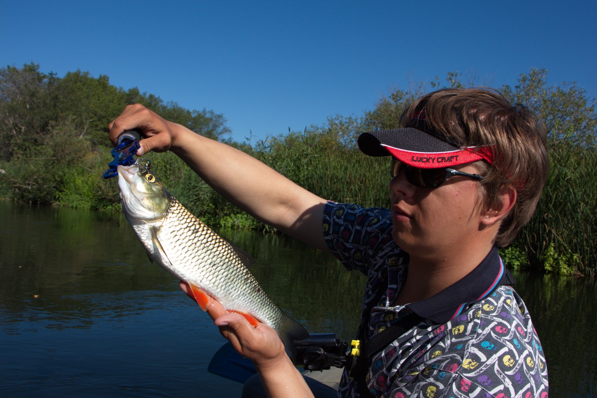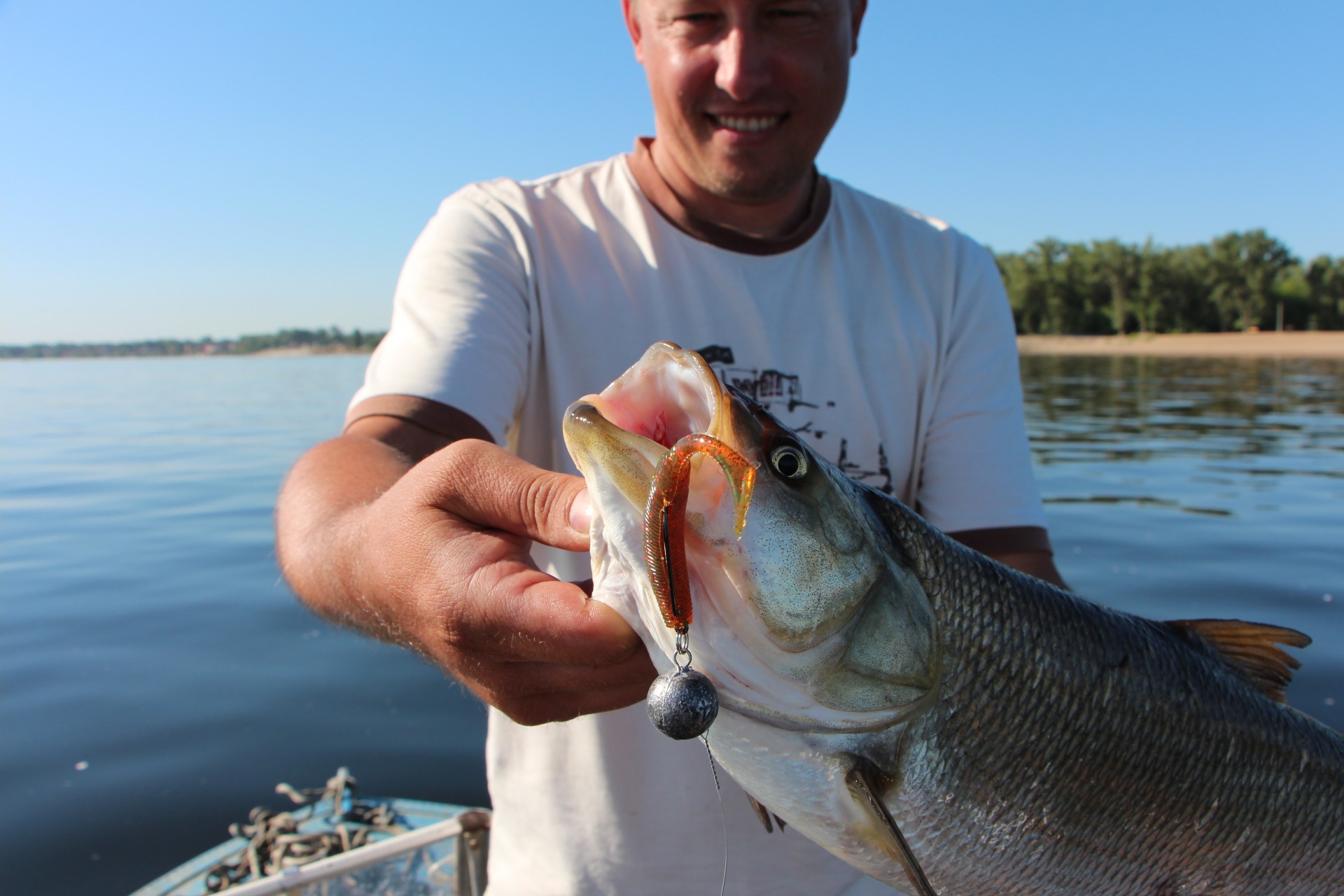 Макали воблеры по Криуше вдоль травы, на ямках джиг. Опять товарищ поймал некрупного судака. И всё!!!!!!!!