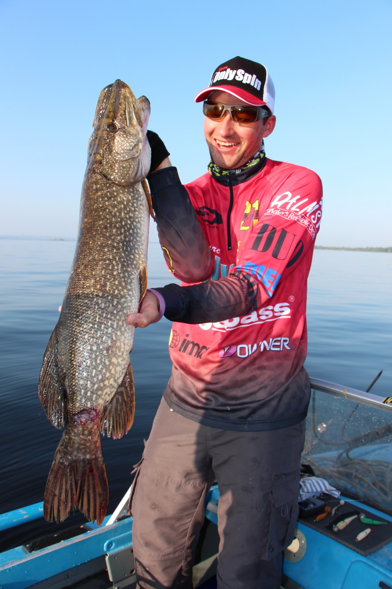 Старосемейкино. Сок. Суббота. 6 часов утра. Выплыл от водокачки и сразу ушел с русла в протоку. Условия рыбалки такие: а) Глубина от 1,5 до 2,5 метров.б) От дна трава, трава, трава.в) участок чистой воды над травой от 0,3 до 1 метра. Начал поиск хищника с вертушек Мепсс. Ничего. В камышах кто-то злобный гоняет малька, это уже радует, что рыба присутствует. Перешел на попперы, потом волкеры, Ничего. Перехожу на минохи. Ставлю Pontoon 21 Cheeky в цвете 304. На четвертом забросе под камыш удар и щучка в лодке. Размер с локоть вместе с пальцами. Дальше минут 20 полскания не приносит ни какой радости. Ставлю Хамсин, но в итоге трава,трава. Заглубление воблера не позволяет комфортно рыбачить. И тут я вспомнил о весеннем пробретении новых приманок от Lucky Craft, после просмотра телеанонса с выставки с Москвы, где наши ребята НеОn, Morozzz, а также Старков А. рассказывали о этих новинках. (Спасибо Вам парни. Действительно, все как Вы говорили, все работает). Извините за отступление. Так вот я ставлю Pointer 100 SR с широкой спиной, заглубление у него0,3-0,9 метра, такой тяжЕленький он. И на третьем забросе бах удар и снова щучка в лодке. В итоге за 1,5 часа - четыре щучки, все как на подбор одного размера. Мой Major Craft Rizer с этой задачей справился на отлично. Да, приманка такая упористая, короче бицепсы я поднакачал ;D. Извините фотки не смог вставить, Радикал что-то бастует. Все спасибо за внимание. Всем удачи. [ssm103]