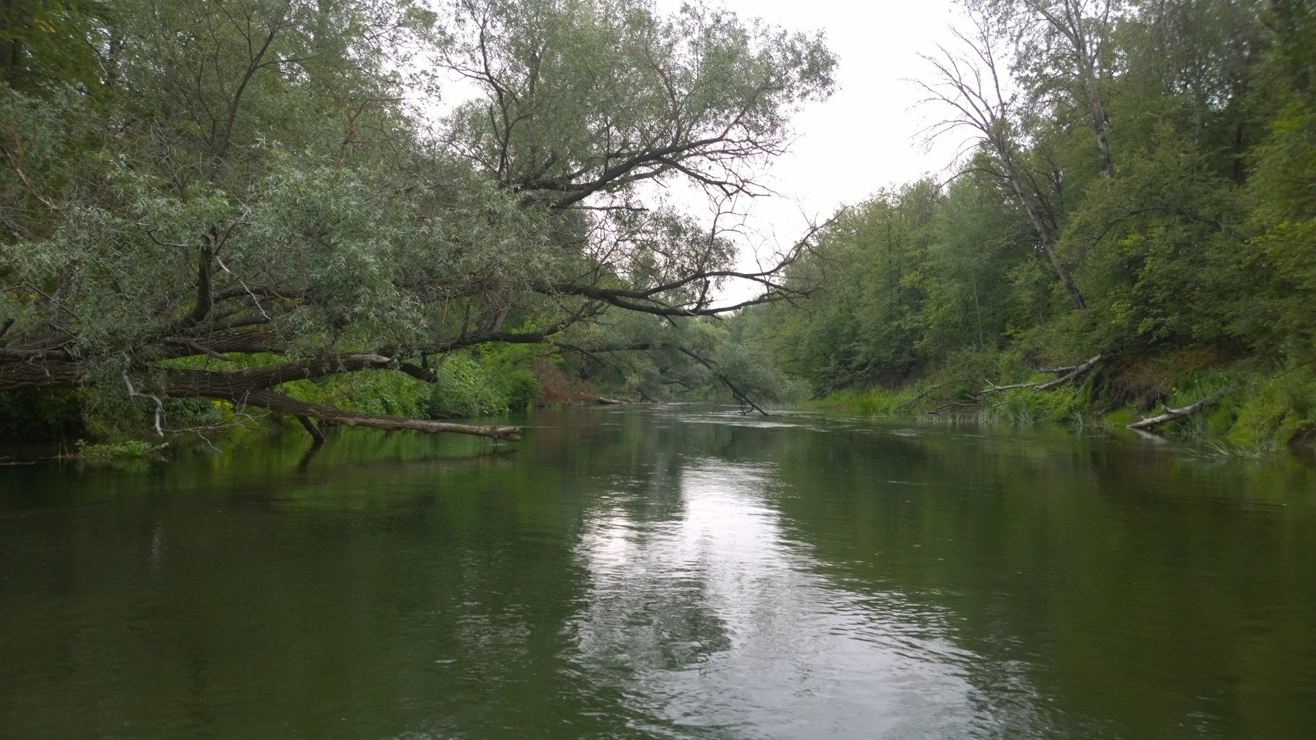 Забрасываю под противоположный берег. Проводка по дуге. Течение помогает вращать лепесток дуки, поэтому катушкой практически не подматываю. Слабенькая поклевка. Верхоплавочка!