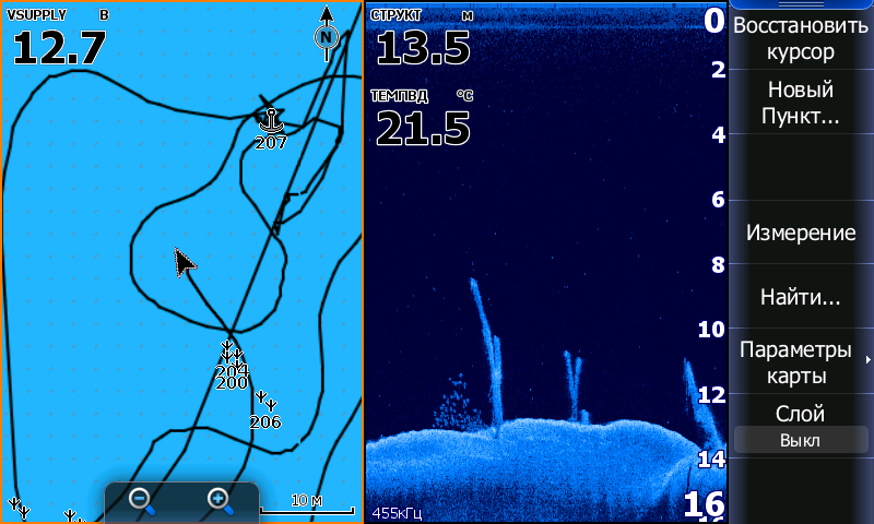 Кто тут говорил про ветер?! Он был слишком слабый, потому что лодка шла низко к воде и часто касалась верхушек волн. [smiley=motor.gif] Смотрели в эхолот, кидали джиги, чебурашки, силикон съедобный и не съедобный, кастмастеры, вертушки и колебло... и поймали только щуренка. Опыт, сын ошибок трудных. Нет его. И рыбы нет. Но впечатление от дальнего похода просто не забываемые.