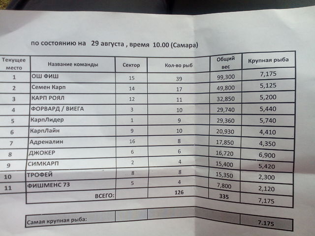 11 команд на Кубке УО поймали почти столько же рыбы, сколько поймали наши 20 команд на Кубке Самарской области в начале июля!