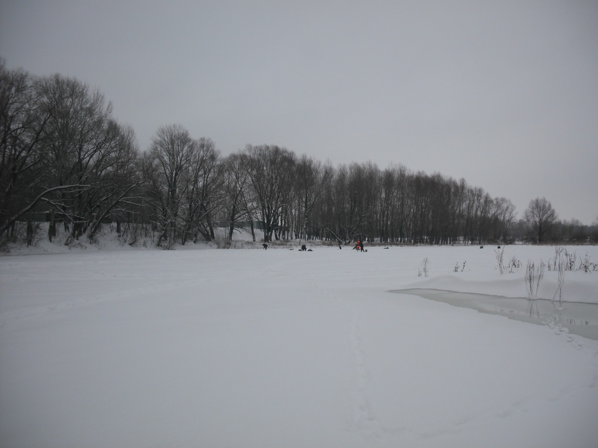 Собирались-собирались, собирались-собирались, но в итоге поехали вдвоём с Ромой. И чего-то явно погорячились. Рановато выехали. Правда, сначала хотели заехать за мотылём на Аврору. Рома накануне купил уж какой был, а был не очень... Дефицит, однако, последнее время. Но Рома где-то услыхал, что на Авроре мотыля вроде уже тоже нет. Так что поехали с тем, что имеем. И приехали, прямо скажем, рановато. [ssm104]. На льду, или что оно там на поверхности водоёма, ни души. И хоть у нас и по пешне на душу экипажа, но как-то в свете последних погодных условий первыми туда выходить не хотелось. Тем не менее собираемся. Но ме-е-едле-е-ен-н-но. Не торопясь. Глядишь, кто и подъедет. Однако никто что-то не ехал, но зато на водоёме, недалеко от берега, вдруг обнаружилось чёрное пятно, несомненно являвшееся предметом одушевлённым. Ибо шевелилось. Ага! Есть контакт! И тут же, метрах в ста от нас, на лёд, а теперь в том, что это лёд сомнений уже не было, вышло ещё два одушевлённых предмета. Один даже с санями. Всё! [smile=klass] Вперёд!