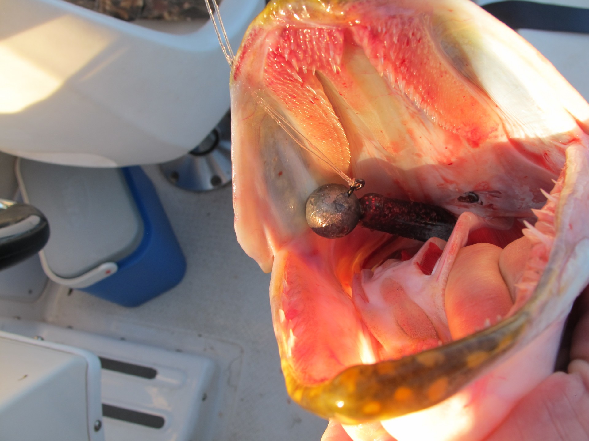 В Воскресенье на рыбалке,рыбы на эхолоте полно,явно виден хищник,но очень капризный,поклёвки редкие и холостые,не редко сходы на первых секундах,видно брал неохотно не заглатывая приманку,доводили до лодки,приманки цеплялись за край губы!Оторвался на окуне,ратлин Mottomo Saltar!