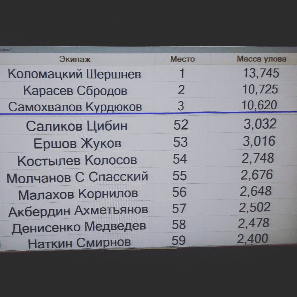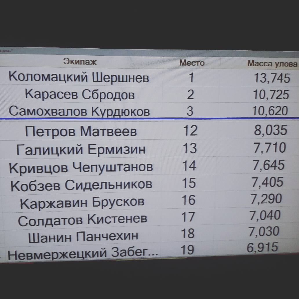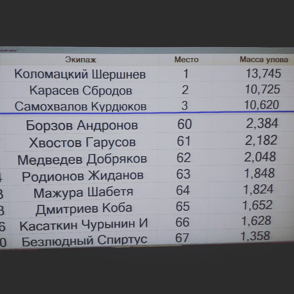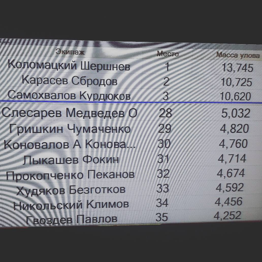 Взвешивание осуществляется россыпью в единообразной таре, предоставляемой организаторами на электронных весах. Рыба, выловленная в первом туре, поступает в распоряжение оргкомитета.