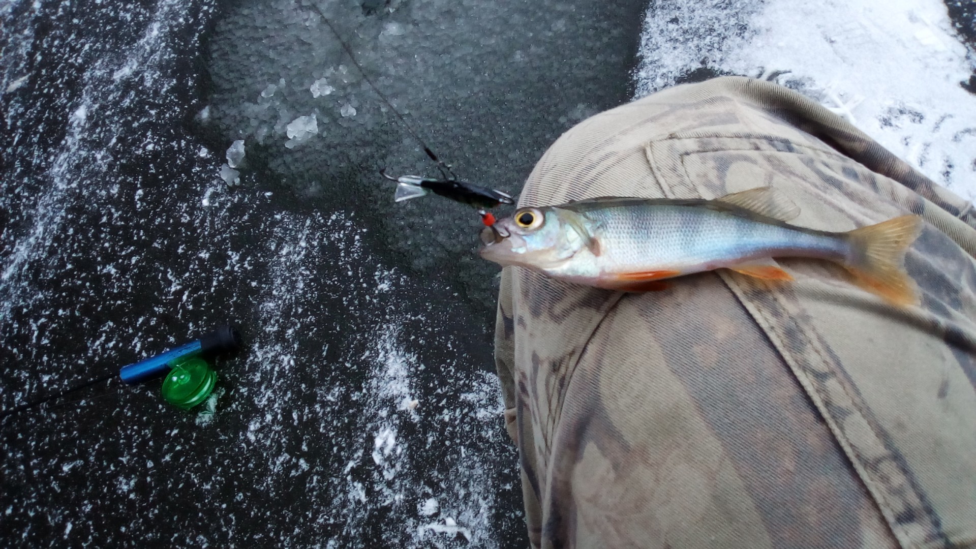 как мэр,подтвердят,что ловилит.к. сегодня можно нести всякую охинею, подтверждаю, ловил. Чёртик, леска 0,08, лунка на 100, в подсак зашла с разгона...