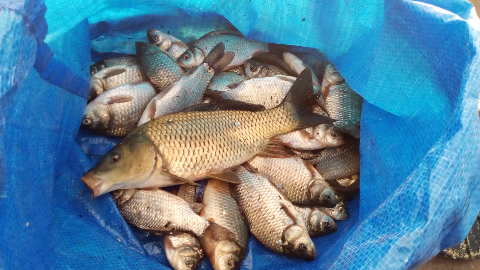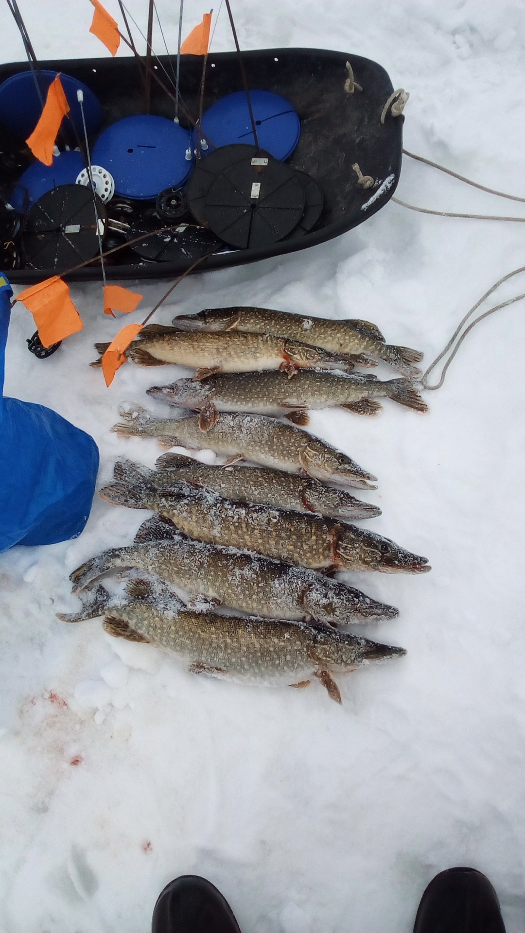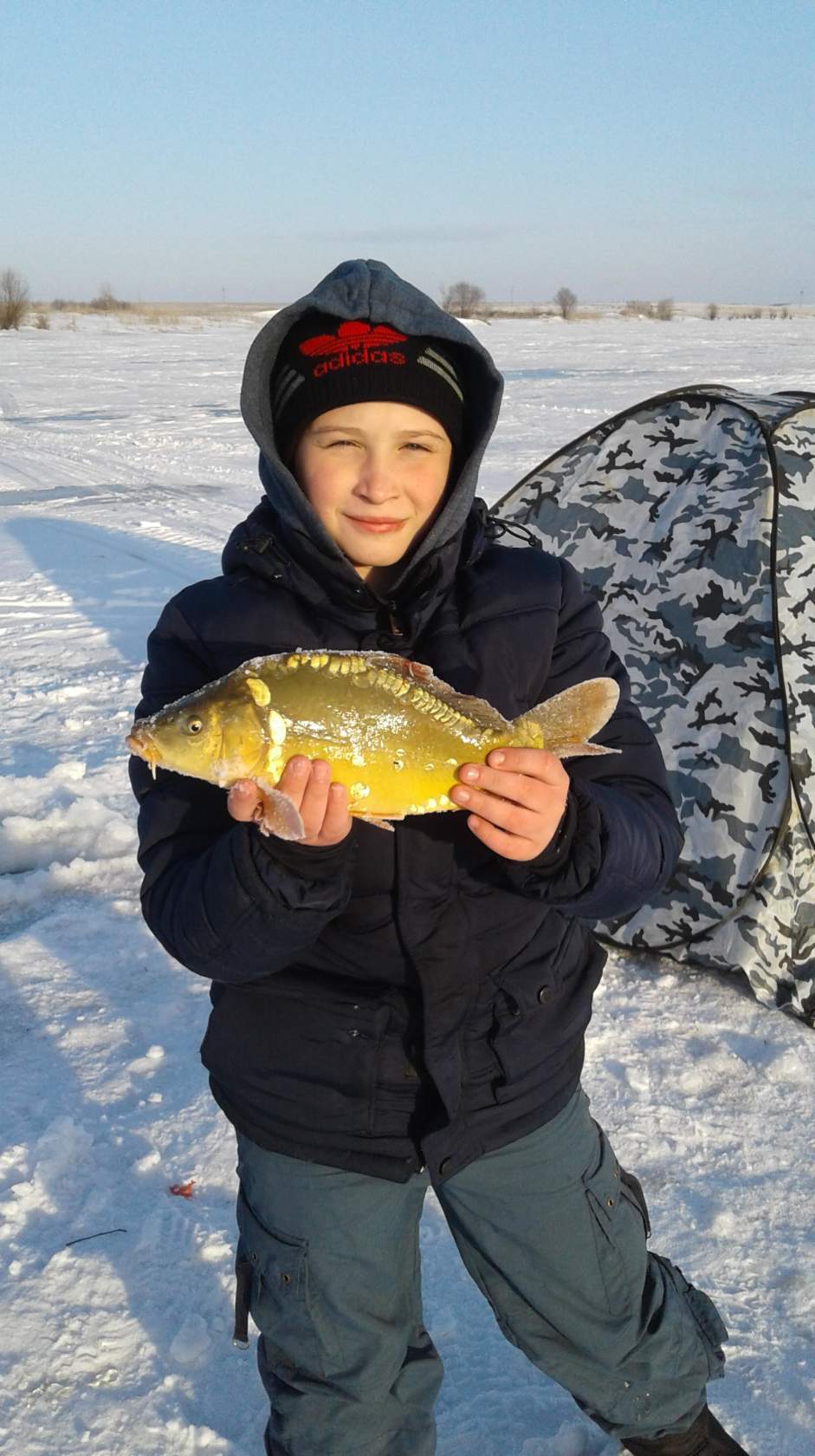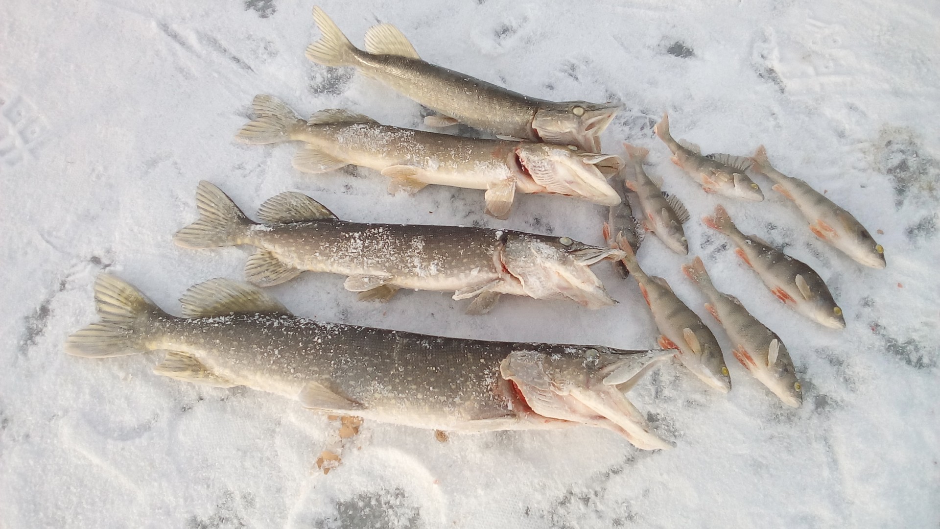 В субботу привычной компанией были на рыбалке, на Волге, в Петровском затоне. Видимо попали на "слом" погоды, было морозно, ветра не было, но и мороз не падал. Ловили плотву и густеру. Все отловились по- разному: ко-то больше, кто-то меньше, я поймал 3-и с небольшим кг. Ловил на мотыля, на донки, на арбалет. Время провели замечательно, рыбы наловили-что еще надо для счастливой старости? Правильно-денег побольше. Есть возражения?Да, место начинает понемногу капризничать. Сидим буквально в 10 метрах - у меня 7,8 кг (удивительное совпадение с Отморозком, правда по времени ловил меньше), у у друга и трех нет. Ну он расстроился, говорит давай поедем хоть окуней половим и живца(собирались за щукой, карасей как известно нигде нет. Где их кстати Гончаров берет - опять секрет). Ну и по окуню у друга не срослось - опять 10 метров между лунками, у меня штук 10 в районе 150 грамм, у него один живец. Ну не надо было говорить, что за ним едешь. Ну смех и грех , одним словом. Не его день. По щуке, кстати в воскресенье не очень. Две в районе двух кг. Но правда 4 схода чего то некрупного. Последовали совету ставить крупного живца. И вот результат.