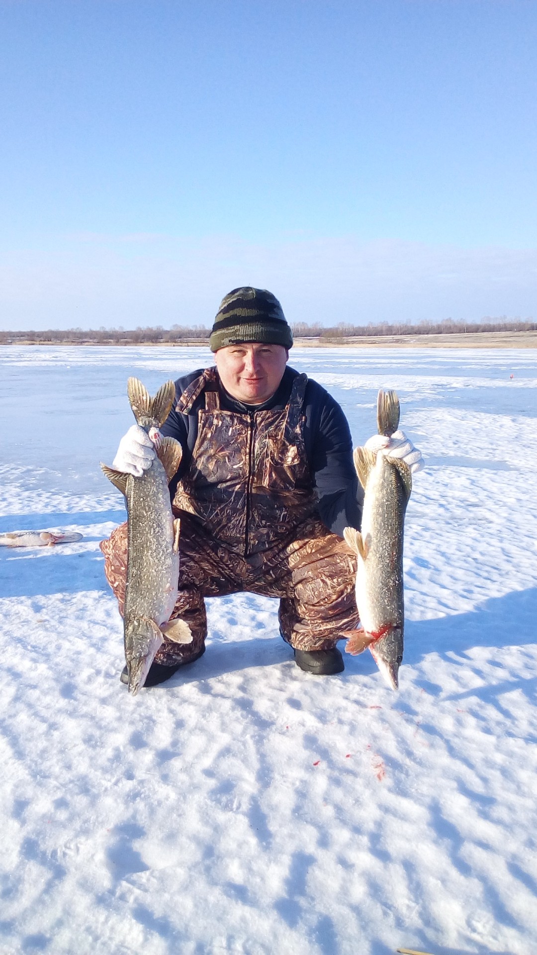 Всем привет ! В пятницу вечером , позвонив другу , решаем ехать за белой рыбой в Чапаевские Луга . Прогноз погоды не радовал - высокое давление 780 мм.рст. , мороз ниже -20 , ветер восточного направления .Аналогичная мысл посетила и нас, только вот бели поймали в четверг на снегоходе, а тут какое совпадение - в снегоходе потекло масло, да еще мороз, в общем не снегоходная обстановка. Решили на Подстанное на машине, приятель говорил, что дорога ничего. Дорога действительно ничего, правда маленько попетляли, но в 8 были на месте. Расставили жерлицы на карася, и я пошел долавливать местного живца. Клев щуки, в общем как обычно в конце января - феврале , днем. И на карася и на местного окуня. Всего 7 шт., вот только весу в них тоже 7 кг. В процессе ловли живца попалось 5 окуней поприличнее(150-200 гр) и одна сорожка на 150. Так, вроде клюет нормально. Поражает количество упоминаний в отчетах о давлении 780 мм. Ну не влияет оно , сколько можно об этом писать. В школе все учились, элементарный расчет: 10 мм рт.ст. (а больше изменения в день редко бывают) - это 136 мм водного столба, то есть 13,6 см по глубине. Ну кто ей мешает на 13 см всплыть. Или еще хлеще "рыбу давлением придавило". Из школьного курса физики известно : давление действует во все сороны одинаково. Как оно может придавить? Это же не сапог. Другое дело, что изменения давления сопровождаются общими изменениями температуры, освещенности и.т.д. Они конечно влияют, хотя и не очень однозначно. Ну, щука, которой приписывают самую высокую метеочувствительность, при солнце действительно берет осторожнее. Но давление ни при чем. Модераторы, извините, заболтался, если это криминал, перенесите то, что лишнее в вопросы и комментарии.