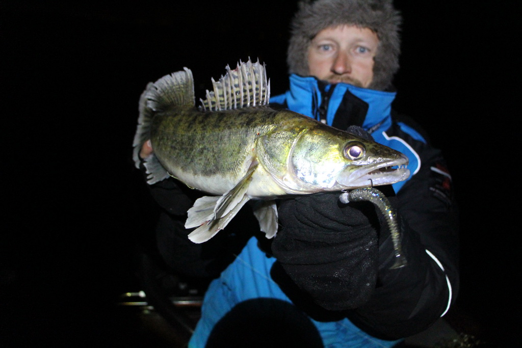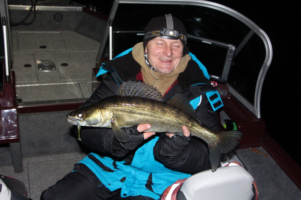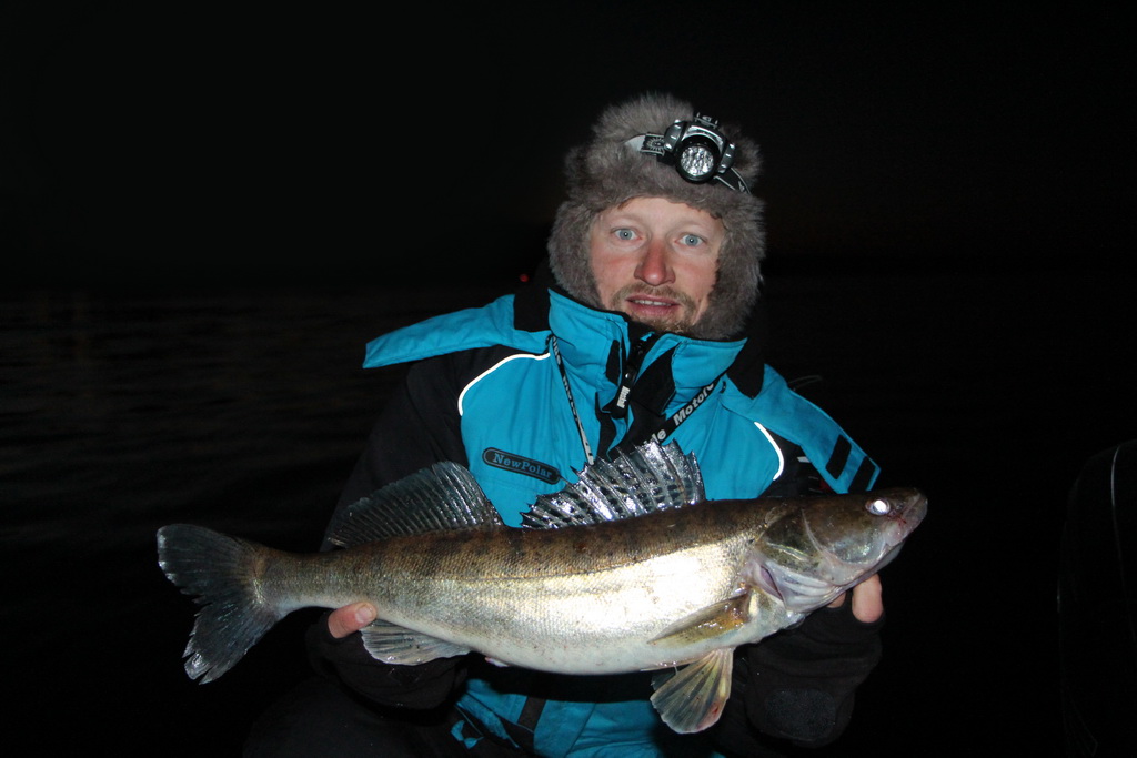 Удалось выбраться на открытую воду поздновато, световой день очень короткий, темнеет очень рано. С наступлением темноты врубился сильный мороз, и поднялся снова сильный туман. Поэтому не стали долго ловить по-темну. Тем более нам же ещё нужно было попасть четко назад по своей проледоколенной дорожке на лодочной станции к пауку))) И ещё были кое-какие дела. Половили символически совсем немного по времени, поймали символически, чему и рады вполне, хотя именно наплавались немало, рыбалка-разведка-путешествие, и поехали домой. Тем не менее на этой рыбалке удалось найти большое скопление судака на одном месте, но этот судак, к большому сожалению, был просто крайне пассивный. И в основном придавливал, вешался за галстук или подбагривался, очень плохо засекался и почти всегда сходил на вываживании.