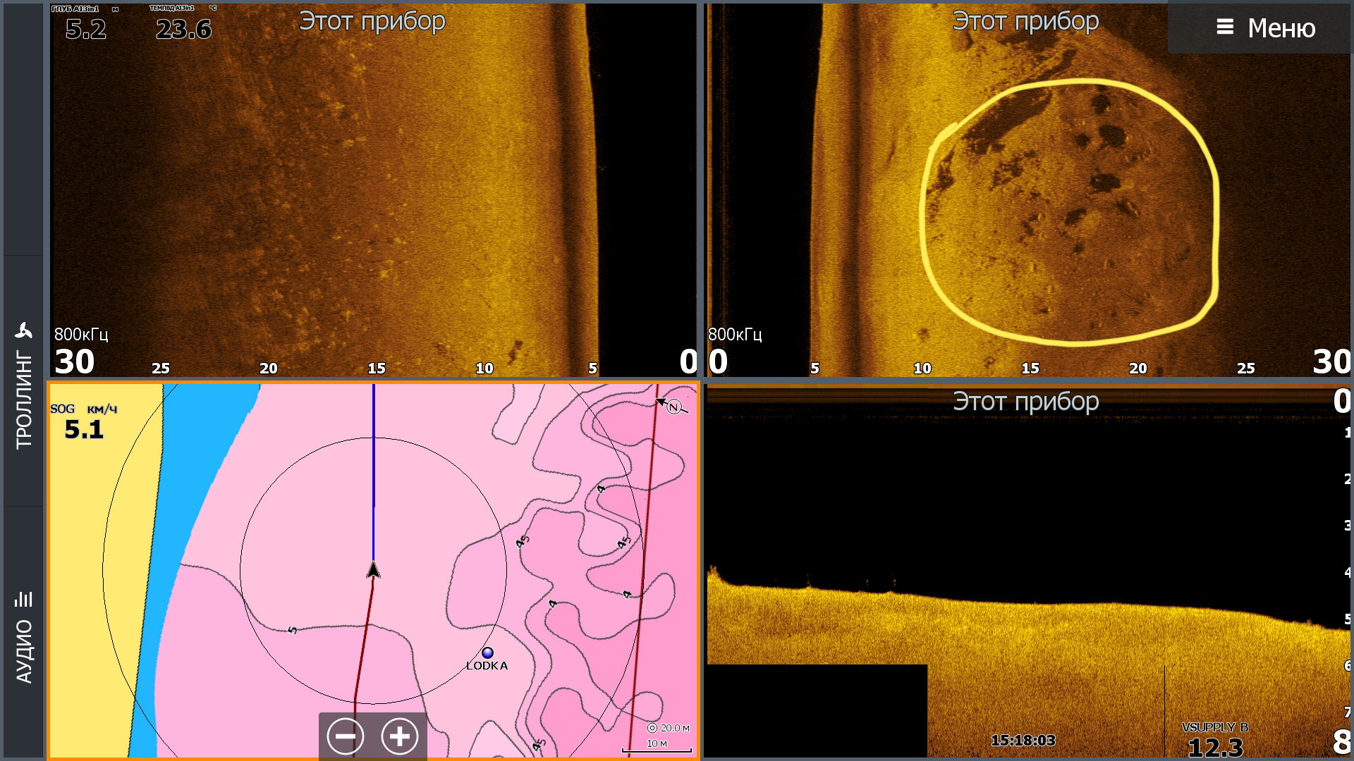 И несколько примеров AI и SS3D. Качество экранов HDS Live стало настолько высоким, что по настоящему оценить скриншоты можно только на самом приборе. Как минимум рекомендую скачать скриншоты по ссылке, а еще лучше посмотреть их на экране HDS Live. По ссылке скриншотов больше чем в публикации. В названии файла датчик, который использовался.