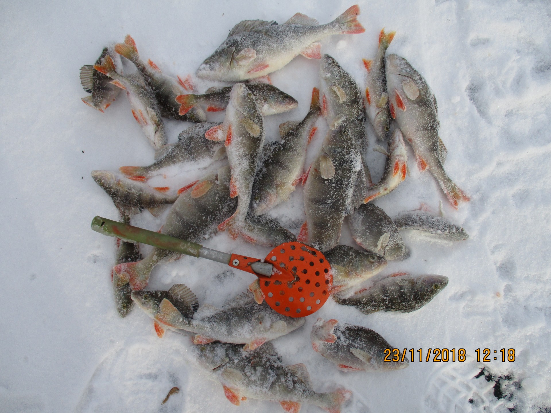Чувашский Сускан ,наконец-то пропустили через КПП ,пешком шли 1,5 км.Погода была отличная - ни ветра , ни дождя.Рыбалка трудовая,окунь бастовал.Брал только на золотистую мормышку с мотылем ,все остальное в игноре.До 10 часов набрал кила четыре окуня с ладонь и более ,начал пробовать разные мормыхи ,блесны и всякую дребедень.С лунки всего 3-4 шт. и можно уходить ,благо лунок полно , бур так и не расчехлял.Особо крупных не было ,до 250 гр.Лед еще сносный , неделю простоит.Набрал чуть больше нормы ,мои напарники в два раза меньше.Всем удачи!