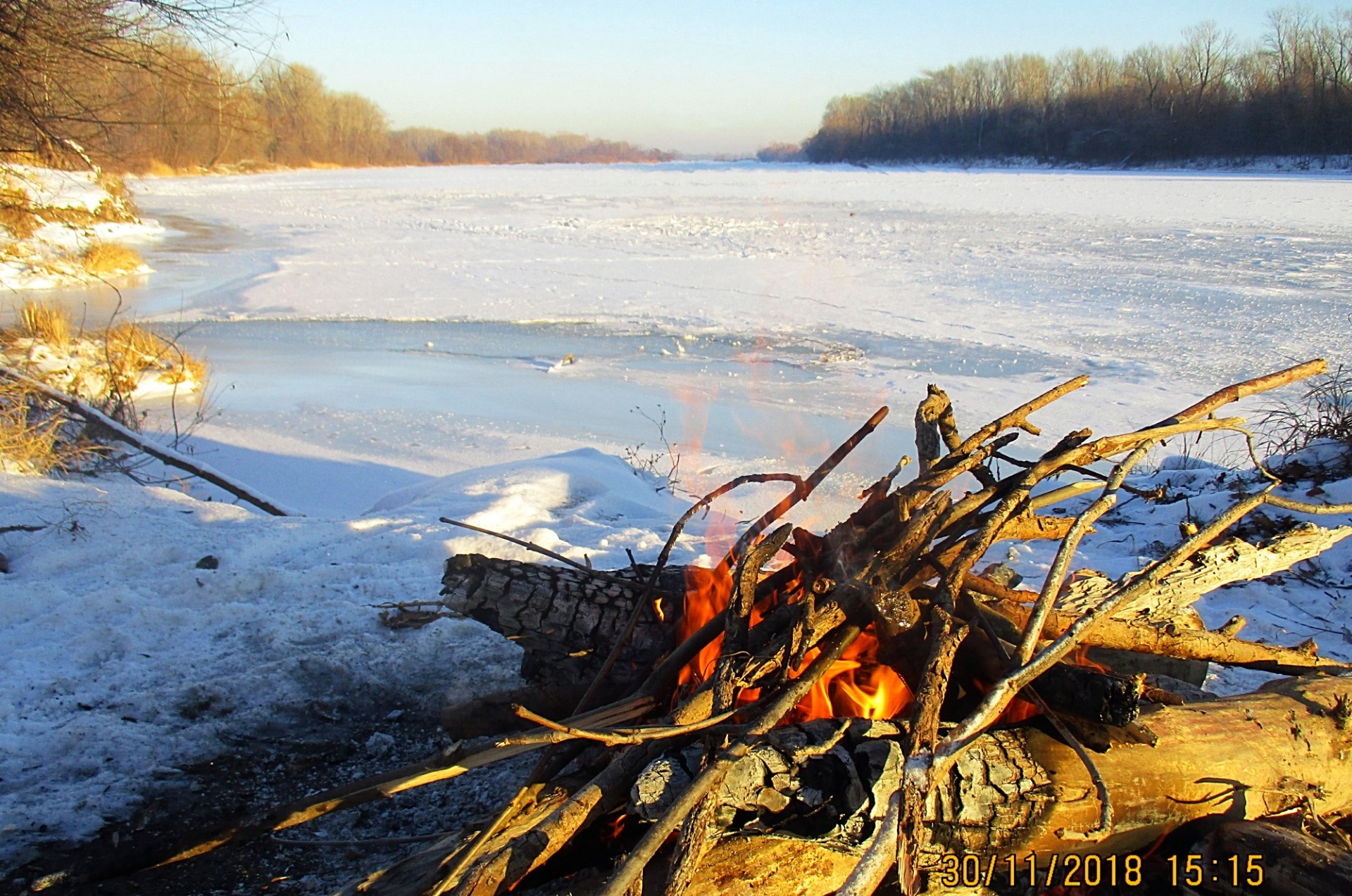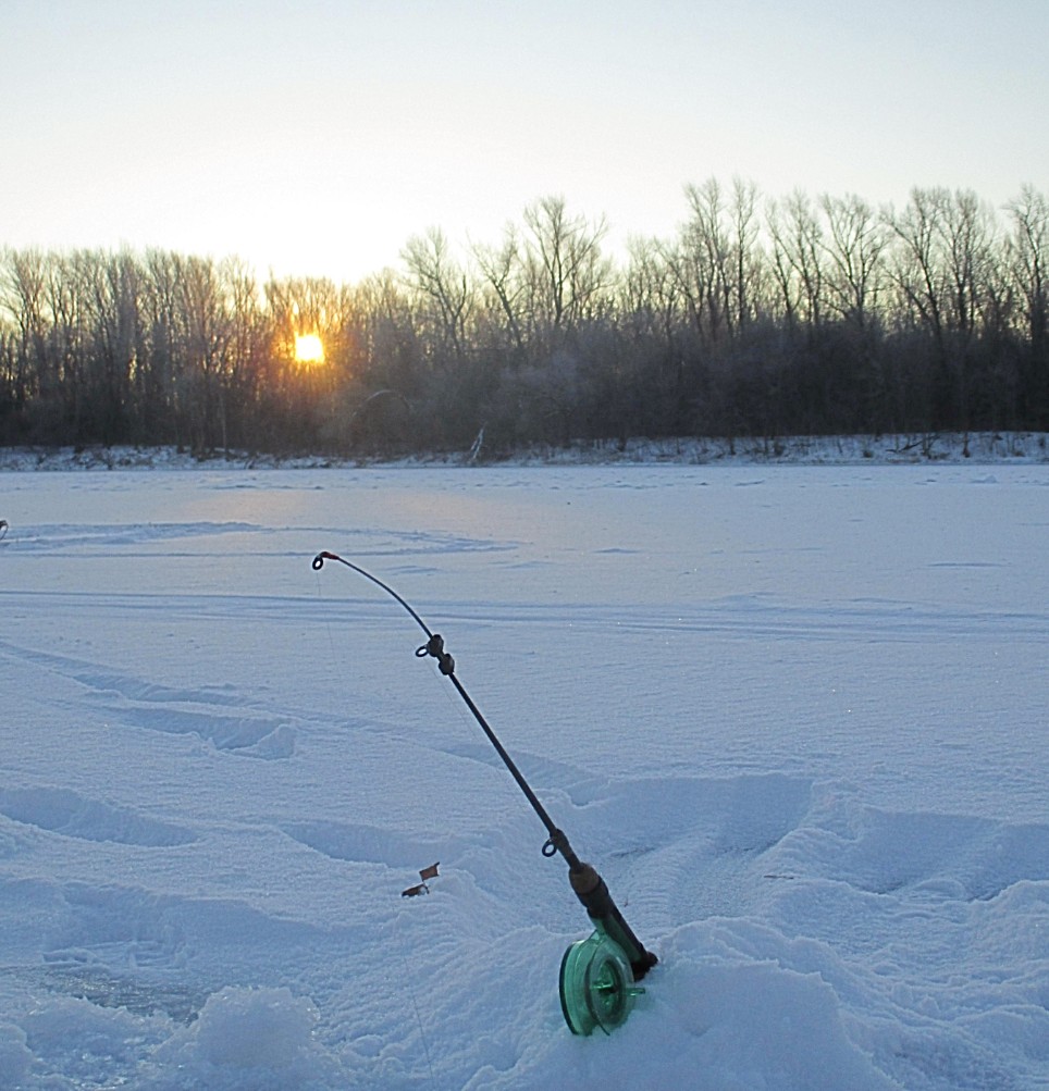 Итак: Самарка, район Алексеевского моста, русло. На точке в 6:00. Пока чай, кофе, сигаретка, провожу рекогносцировку местности. Бурю первую лунку по прошлогодним ориентирам и Сват начинает ставить свои. Я неспеша бурю десятую, Сват ставит четвертую. Первая дзыыыыынь! И первенец кила на полтора на льду.
