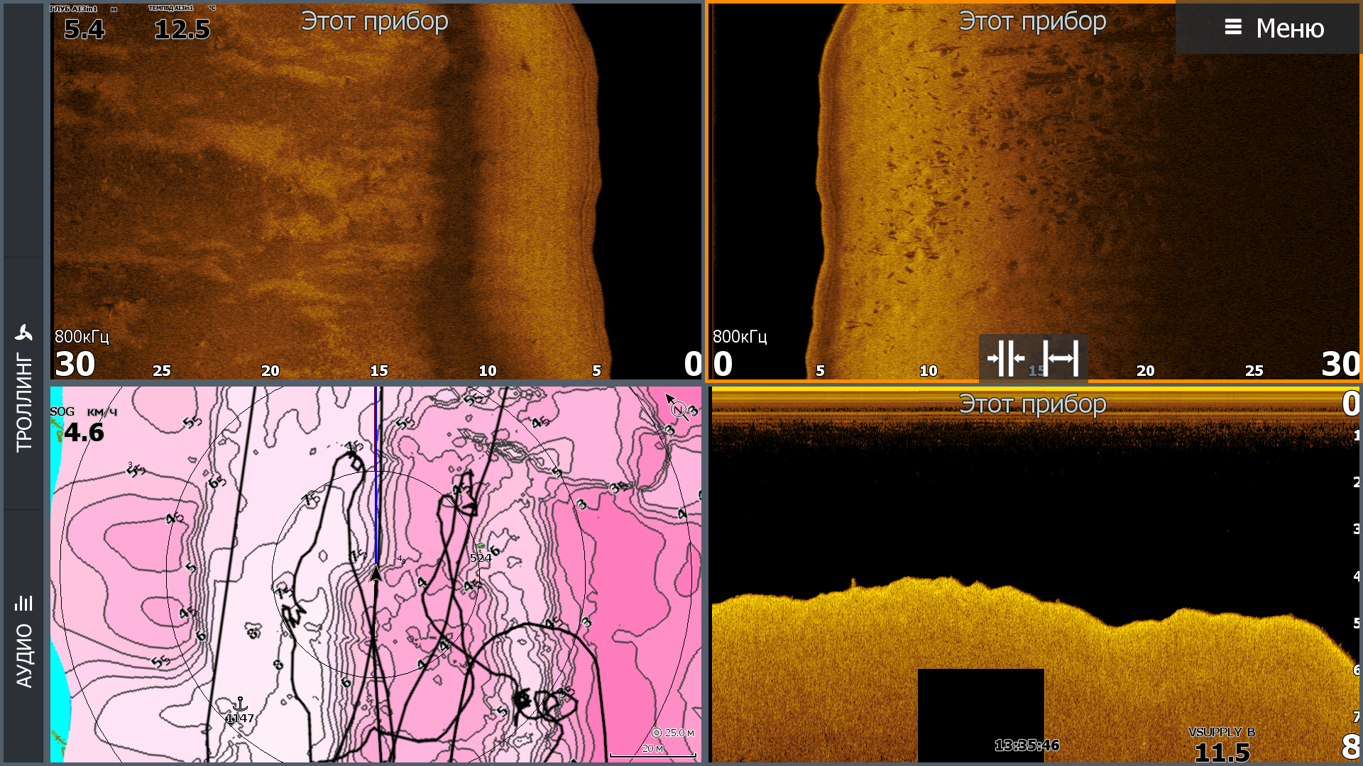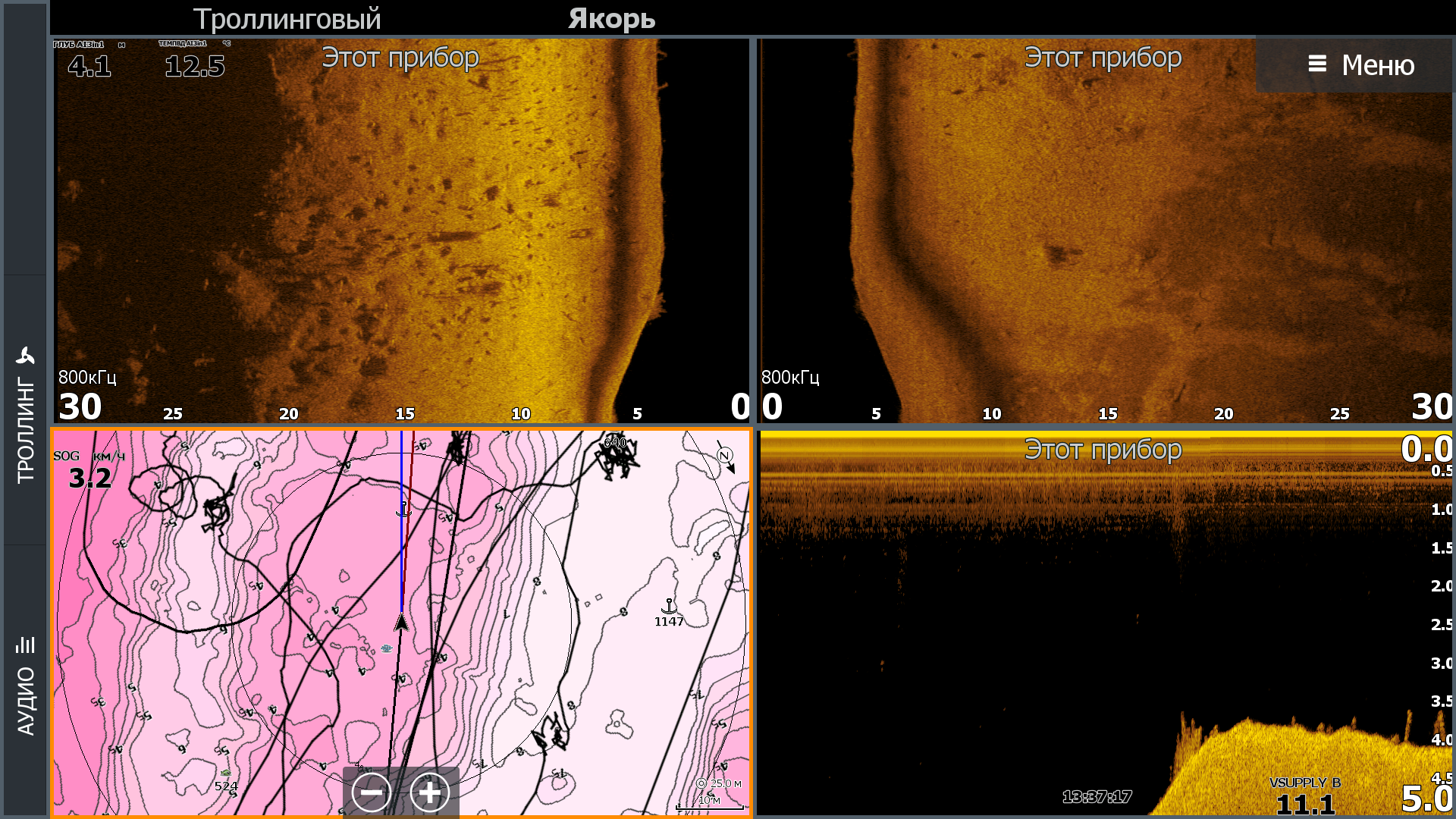 Приличный по времени переход, и вот мы уже уткнулись в экран эхолота. Течение ослабло, вода немного упала, и рыба рассредоточились, впрочем, это было ожидаемо. Наконец в экране появились желанные силуэты рыб. Лодка на точке, плетенка пропитана, кольца обработаны, крупные приманки на поводках, подсак смочен..... Погнали...