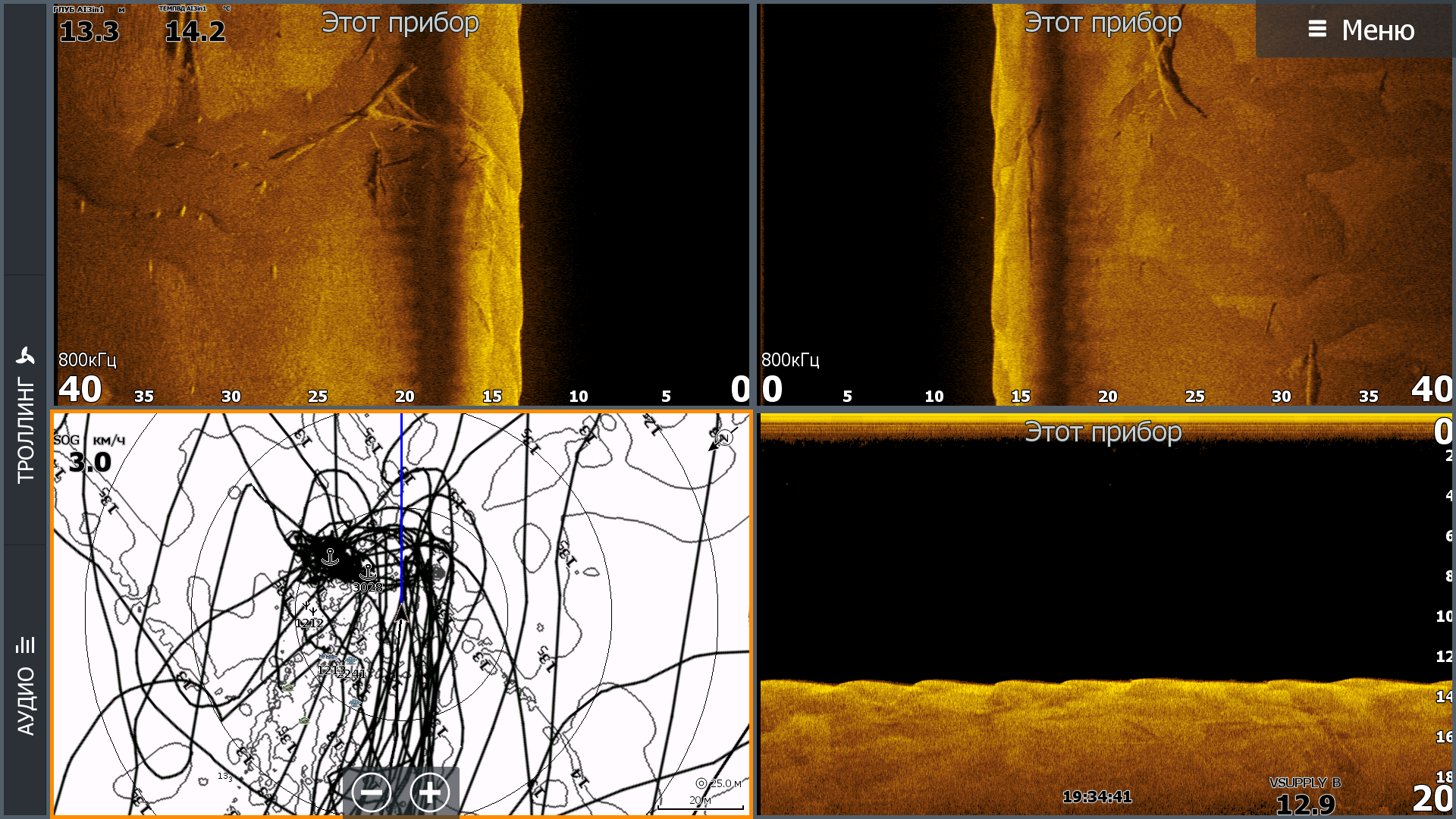Я уже потратил достаточно много времени на первый участок, и солнце поднялось высоко. Решил сначала поглядеть на мелководную зону. И тут же попал на огромнейшую стаю бели, которая забила собою весь мелководный свал на участке длиной более километра. Её край я так и не нашел. Бель — это, конечно, прекрасно, но самым главным было то, что со стороны глубины ее пасла щука. На всем этом участке на расстоянии 20–30 м от бели стояли по парочке крупных силуэтов, причем они могли находиться в толще воды или быть прижаты ко дну. Абсолютно такие же силуэты фиксировались метрах в пятидесяти ниже от предыдущих. Такая картинка была на всей длине свала с белью. Что интересно — в мой предыдущий выезд щука выдерживала точно такую же дистанцию от бели, 20–30 м, ни ближе, ни дальше. Что ж, рыба найдена, пора ловить!
