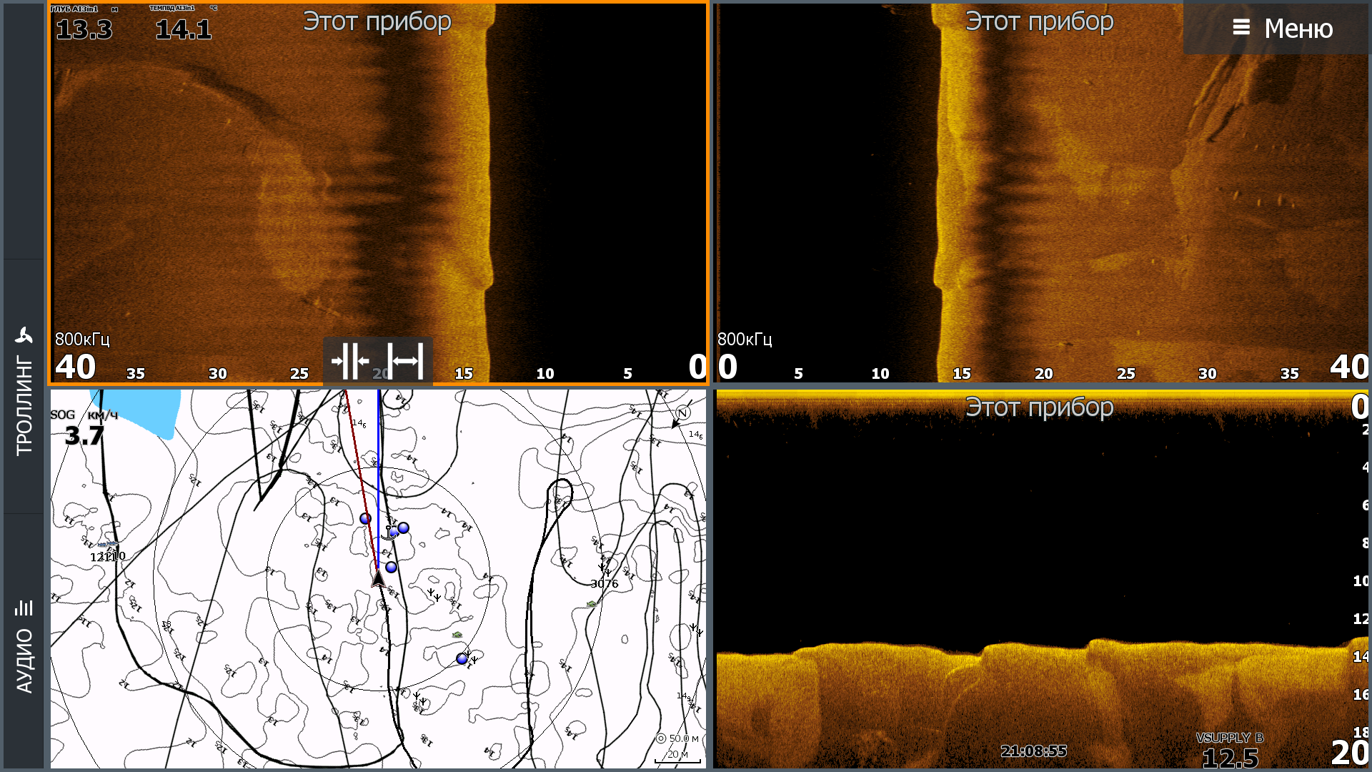 Этим я и занялся. Район ловли представлял себой косу затопленного острова. С одной ее стороны идет сначала пологий, а потом резкий свал в русло, с обратной же стороны — свал в русло затопленной речки; сама коса заканчивается вообще свалом на 20-метровый участок русла. Наличие мелководья по соседству с большими глубинами, свалы, течение, барханы — всё это практически гарантировало присутствие здесь рыбы, и рыбы крупной. Но два часа плавания с эхолотом в режиме активного поиска привели к неутешительным выводам. Да, рыба есть, но она слишком размазана по рельефу, стоит рассредоточенно, а её размер не воодушевляет.