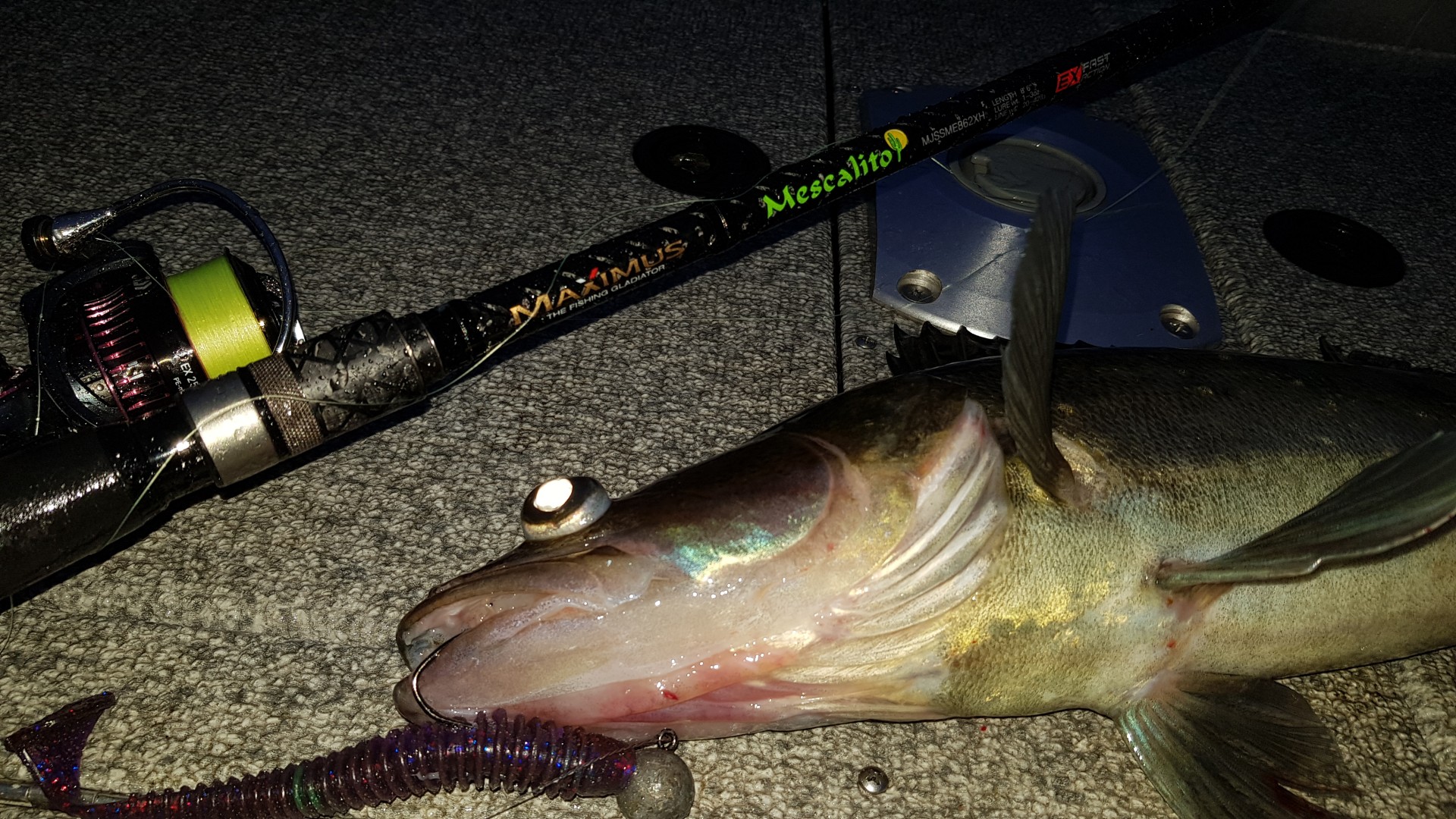 Засветло ноль, с темнотой пришли поклевки на 5" от Диско Люрес. К сожалению не все результативные.( За то вытаскивать интересно- на таком течении кажется что тащишь носорога!))