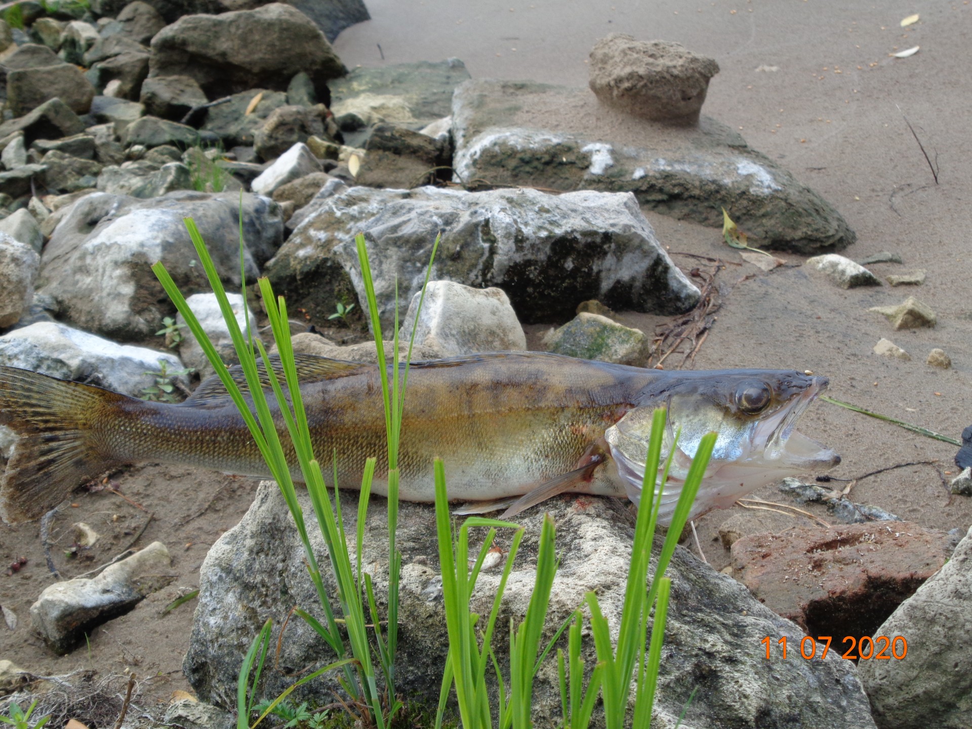 в надежде изловить клыкастого, полоскал резину почти до десяти часов , но он так на встречу не явился ??? . Был один сход зубастой прям возле берега и одного щупака всё таки достал :-[.