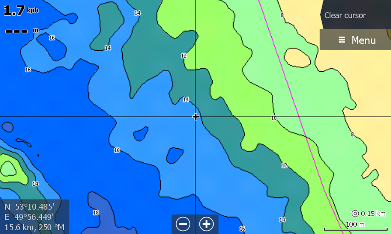 Поэтому считаю разумным отталкиваться от своих данных в заветных местах и в целом от открытых данных QD со всеми их косяками, неполным покрытием, отсутствием привязки к уровню воды. Но там точно кто то макал датчик эхолота в воду.