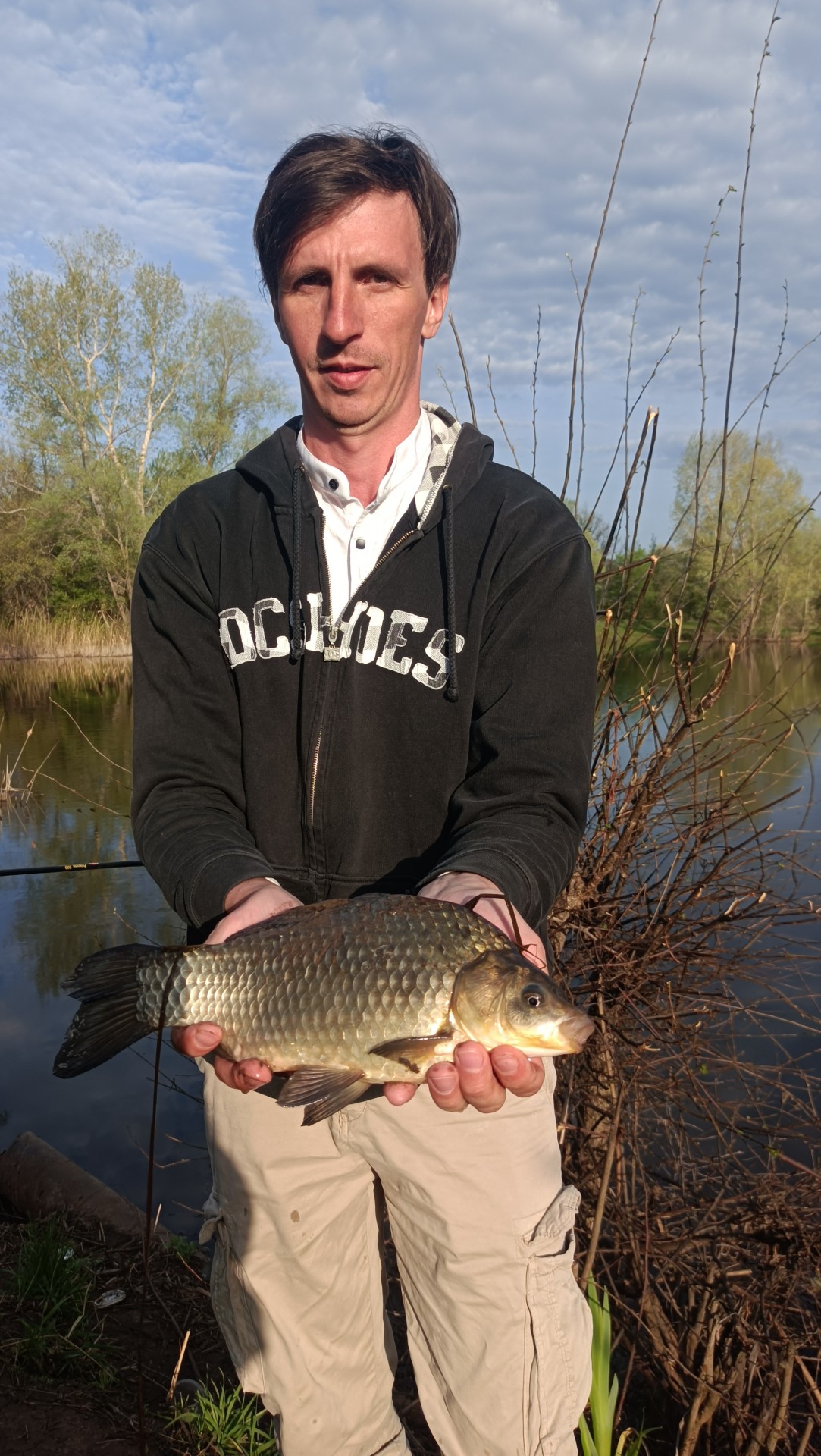 Сегодня выехали с Владом пол пятого.По дороге Влад говорит,весна воду дали ,поэтому рыба может сместиться.Так и произошло.Пришлось все заново искать.Но зато утром Влад поймал небольшого жерешка на 1,3 кг.на Питерцовскую мандулу.