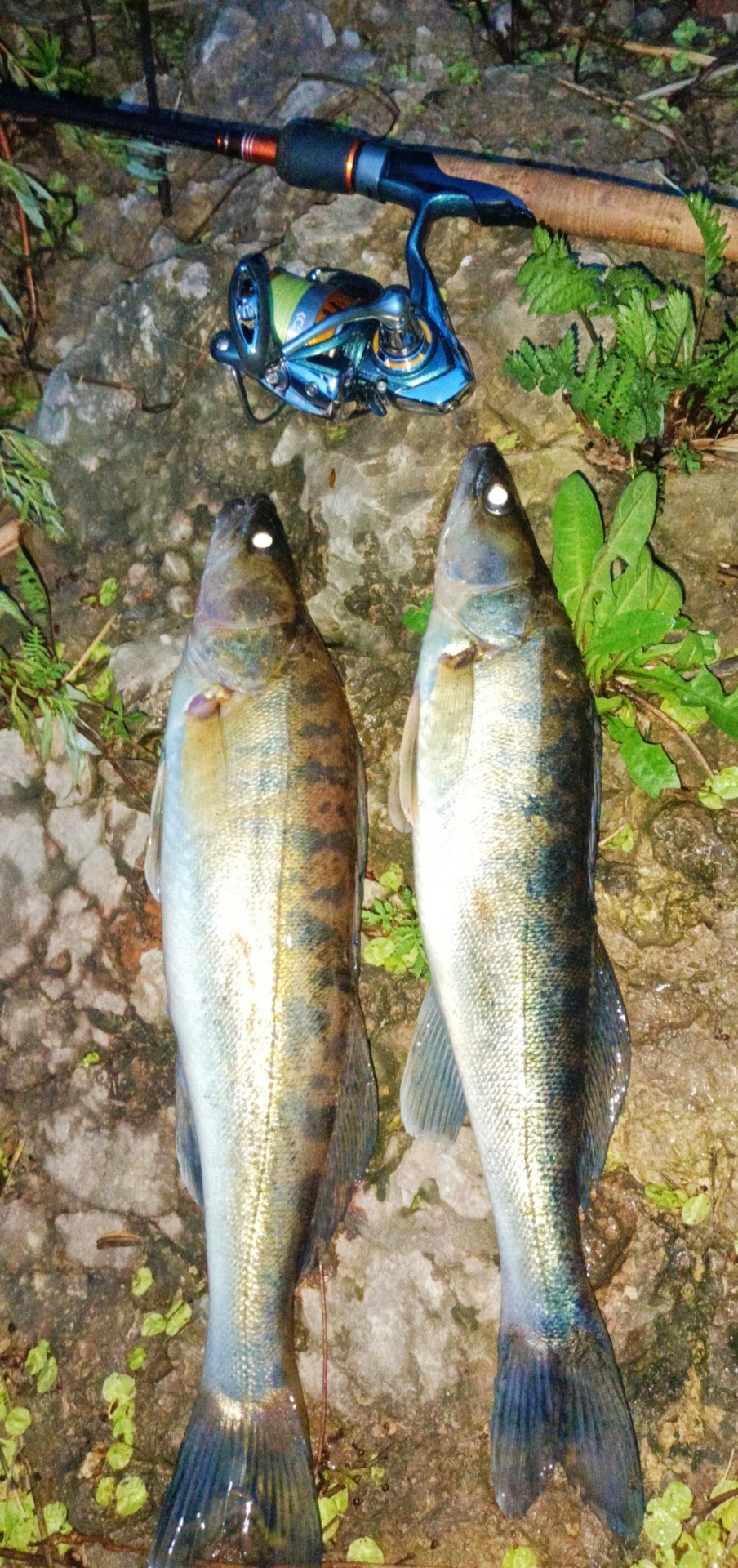 Далее дождя не предсказывалось и я решил удобствами заняться. Разложил кресло, достал подсак (наивный)), задумался айрон испытать. Через 30 мин свернул, так как и так клевало. Ну как клевало, теребонькало. Вроде дерг дерг, а для подсечки маловато. Собирал всю волю в кулак и ждал... Два забагренных пассажира при вымотке. Уже было за подсаком тянулся :D